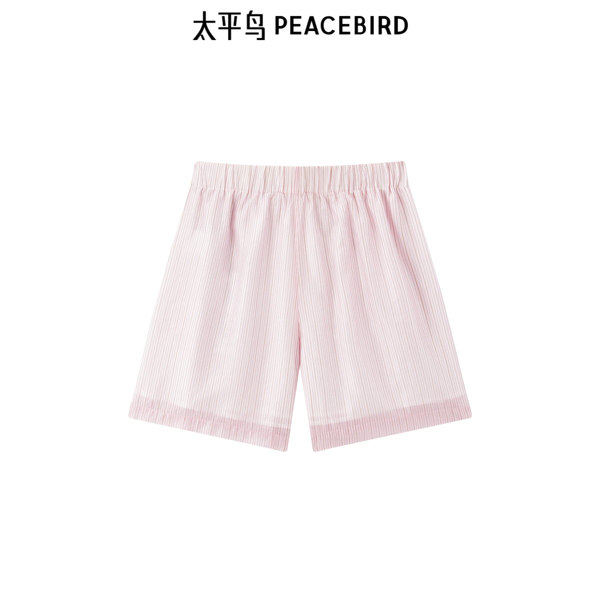 太平鸟条纹套装短裤2025夏季新款高腰宽松直筒运动裤
