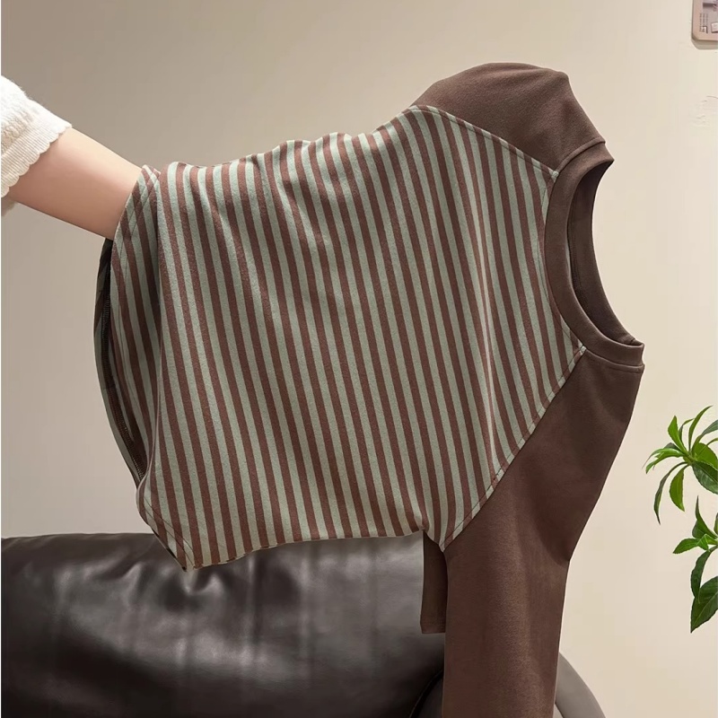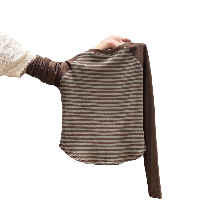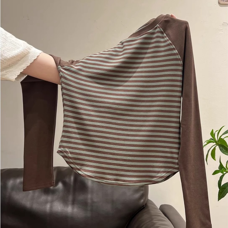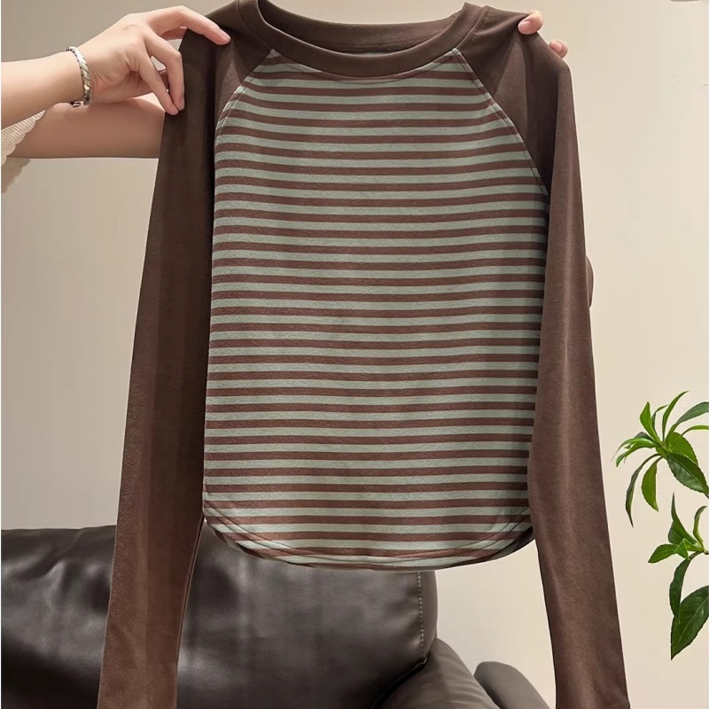 复古条纹正肩长袖T恤女秋季2025新款内搭修身打底衫别致绝美上衣
