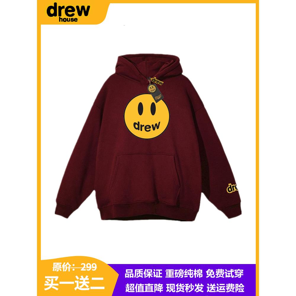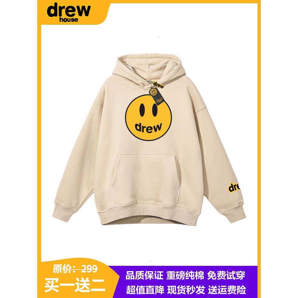drew笑脸美式连帽卫衣男女秋冬季潮牌宽松纯棉帽衫情侣款加绒外套
