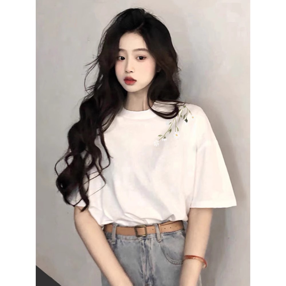 白色纯棉短袖t恤女夏季2025新款爆款设计感小众时尚宽松体恤上衣