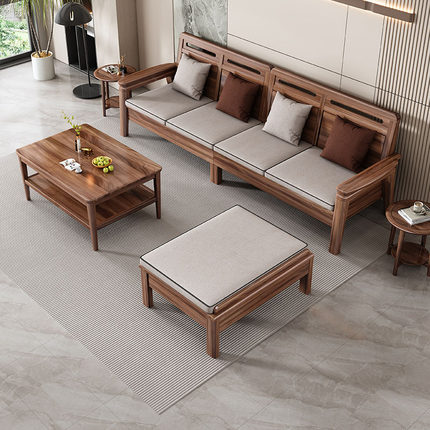 新中式乌金木全实木沙发组合客厅冬夏两用贵妃转角简约小户型家具