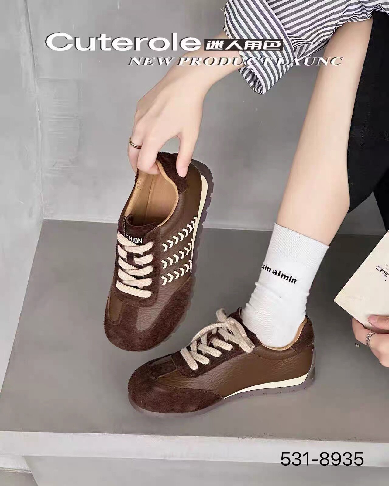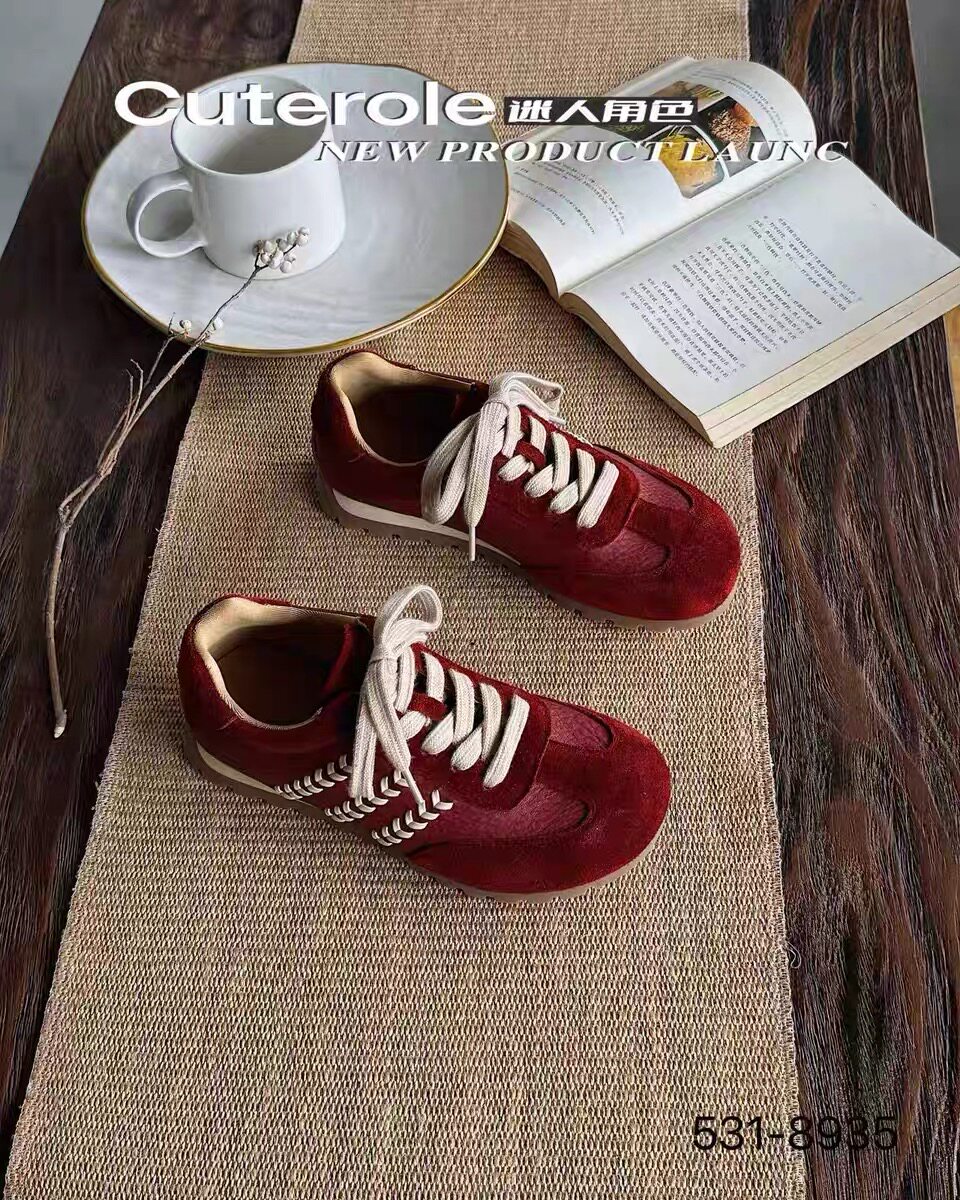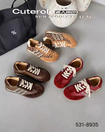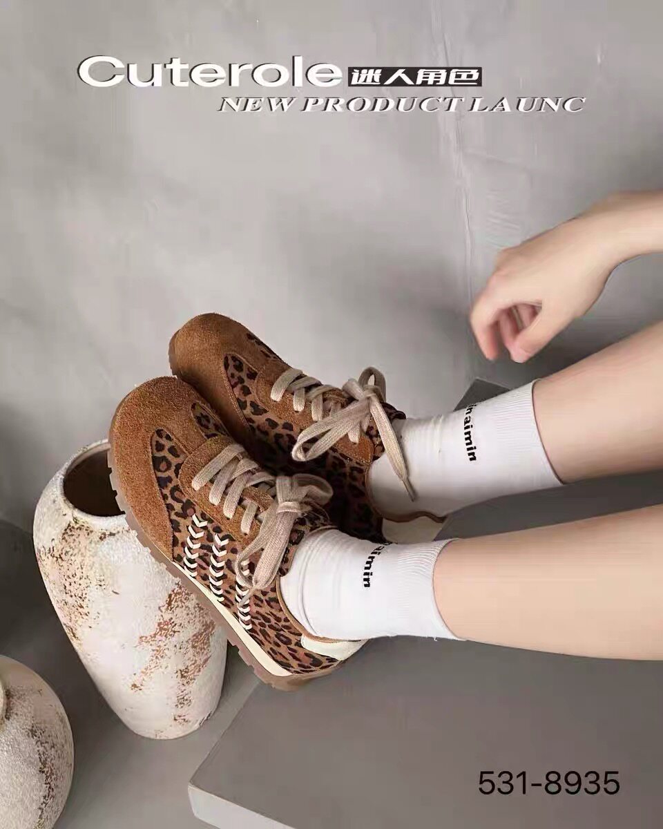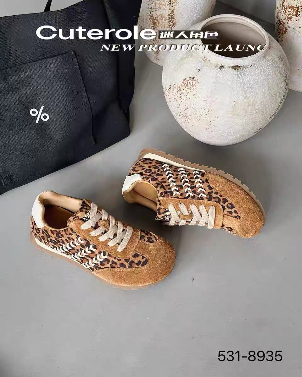 专柜正品迷人角色2025新款商场同款牛皮拼色豹纹圆头德训鞋