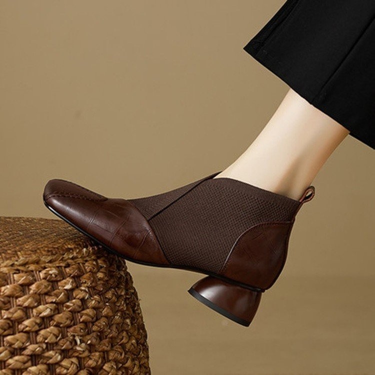 2025新款秋季时尚百搭粗跟单鞋女尖头浅口高跟鞋女鞋中跟皮鞋