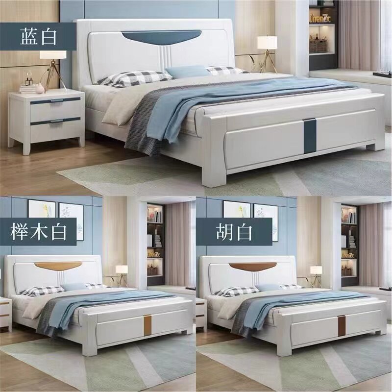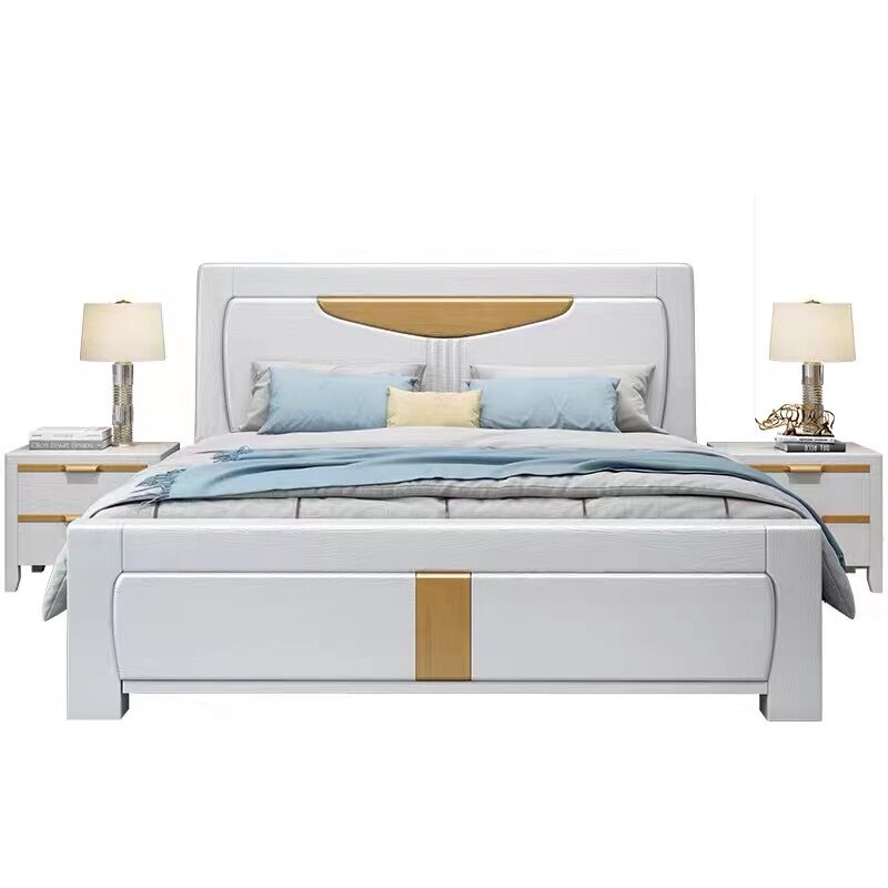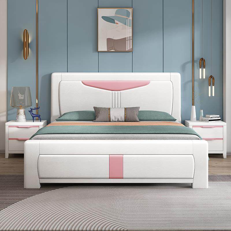 尚品宅配全实木白色主卧1.8米双人简约现代压纹实木床1.5M经济型