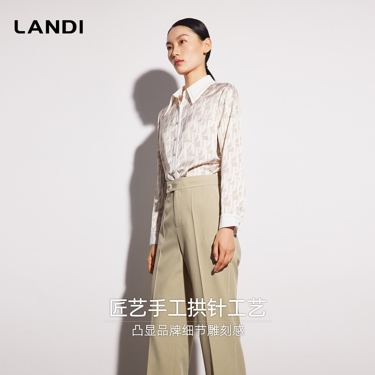 [职场精英系列]LANDI麦冬茶色手工拱针简约西装裤女直筒裤春新品