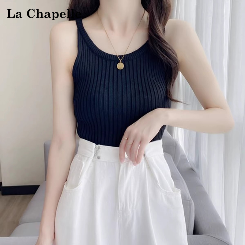 拉夏贝尔白色冰丝针织打底衫吊带背心女夏季新款西装内搭无袖上衣