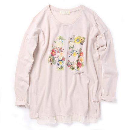 清仓岛屿风格春款长袖中长款韩版宽松休闲大码印花女T恤打底衫潮