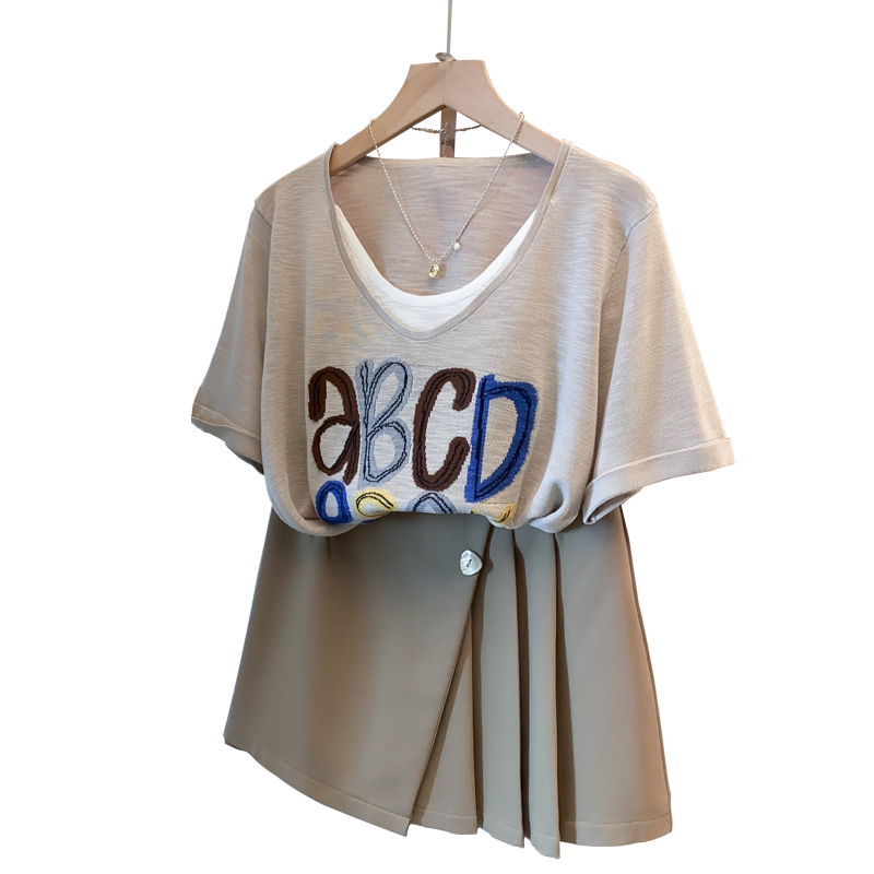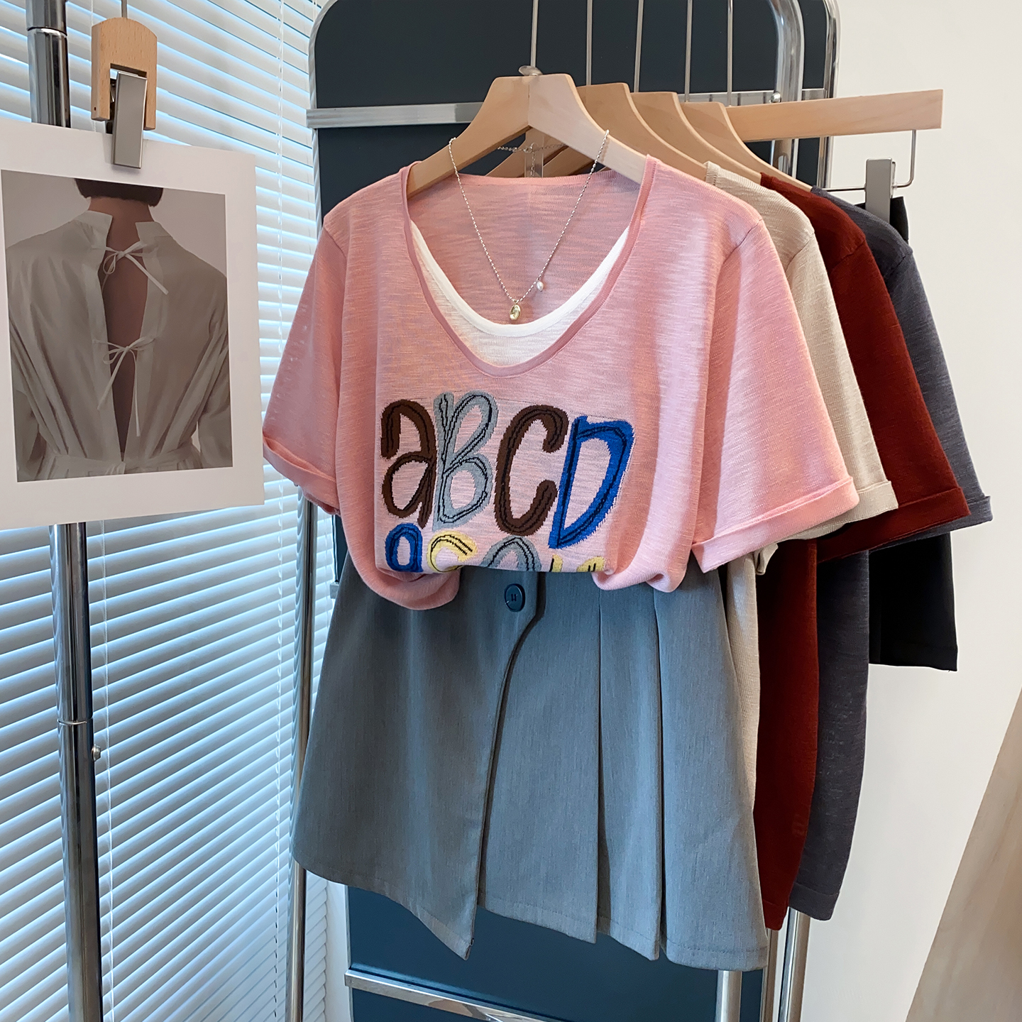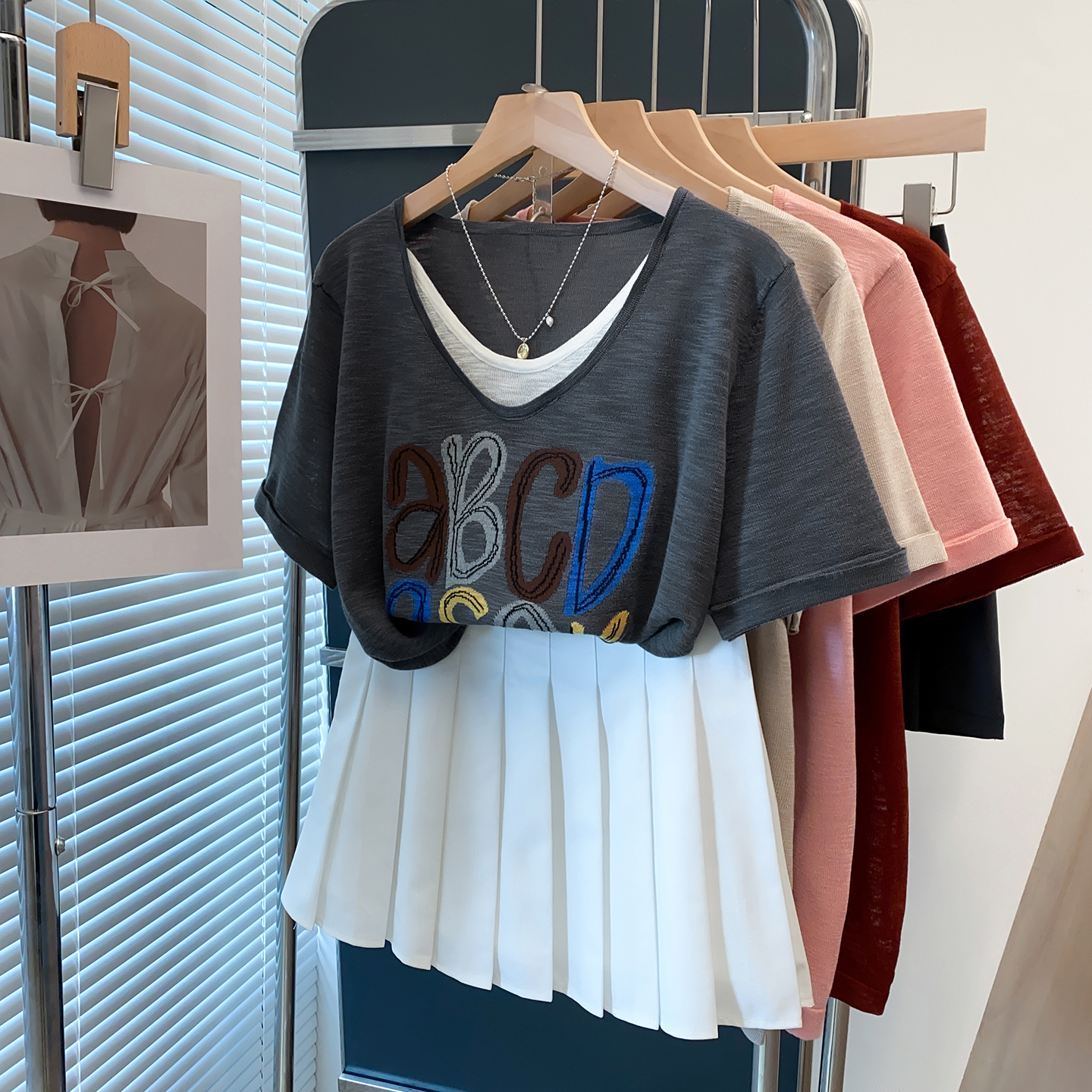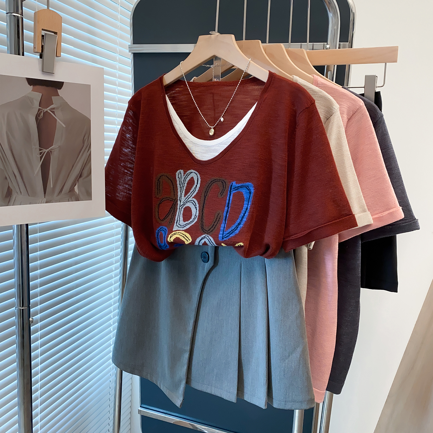 假两件针织衫女2025夏装新款宽松慵懒风外穿上衣薄款短袖t恤衫潮