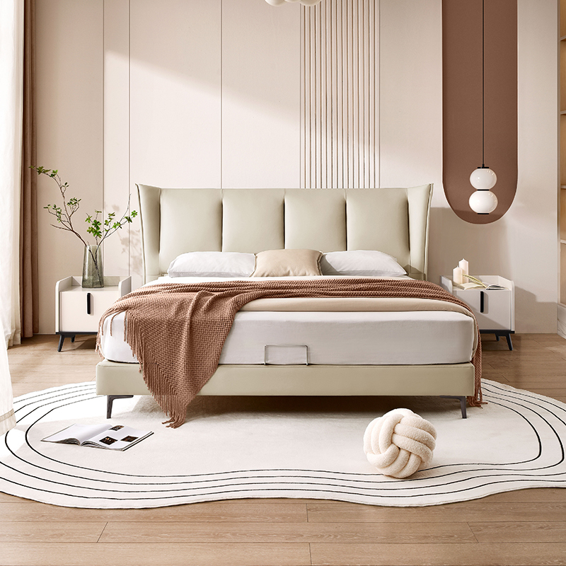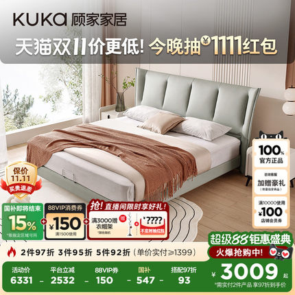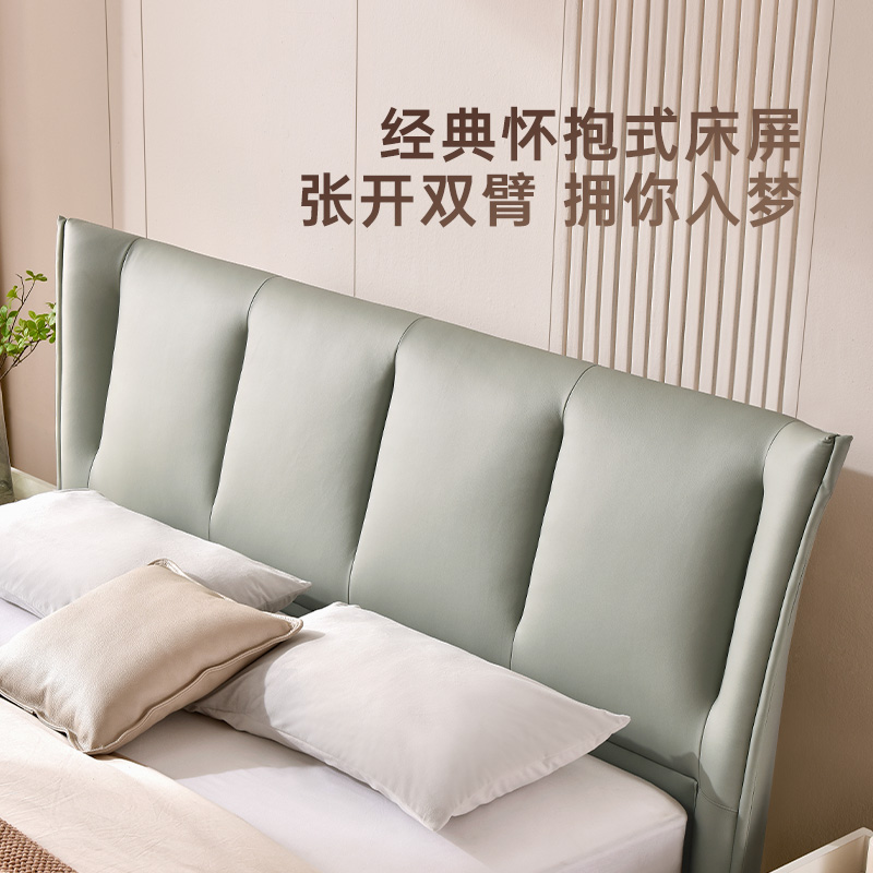 顾家家居现代简约奶油风床现代简约主卧床双人床真皮床皮艺床8073