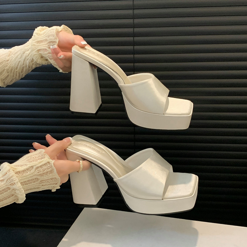 新款10cm超高跟外穿凉拖鞋女夏季厚底粗跟防水台性感百搭凉鞋方头