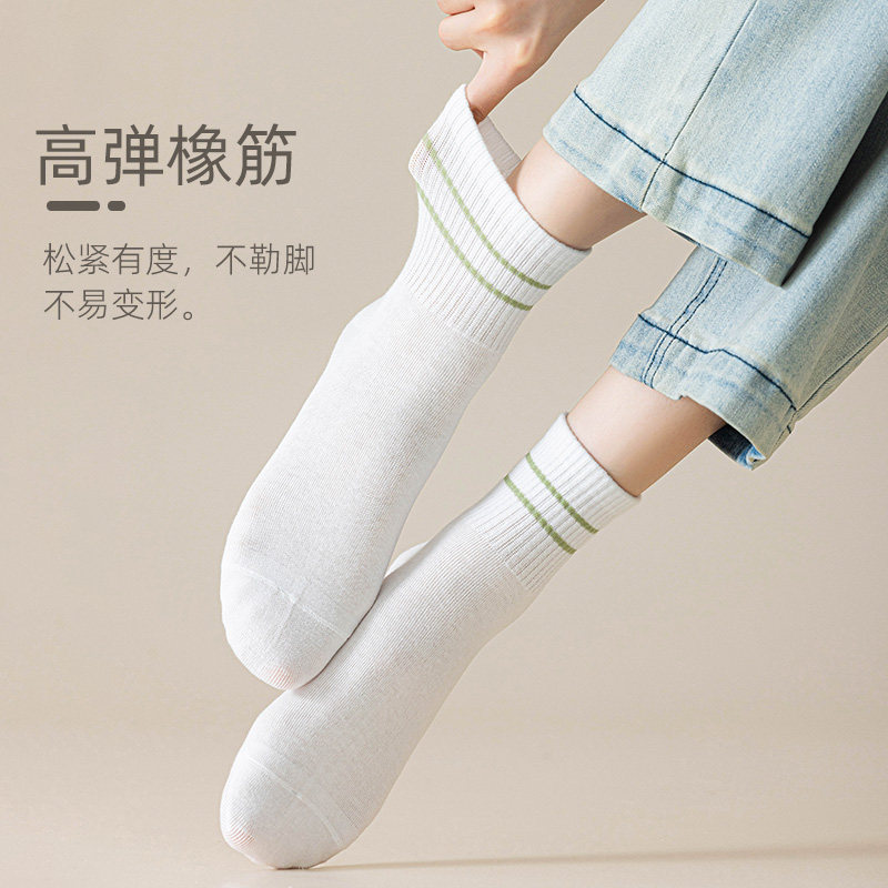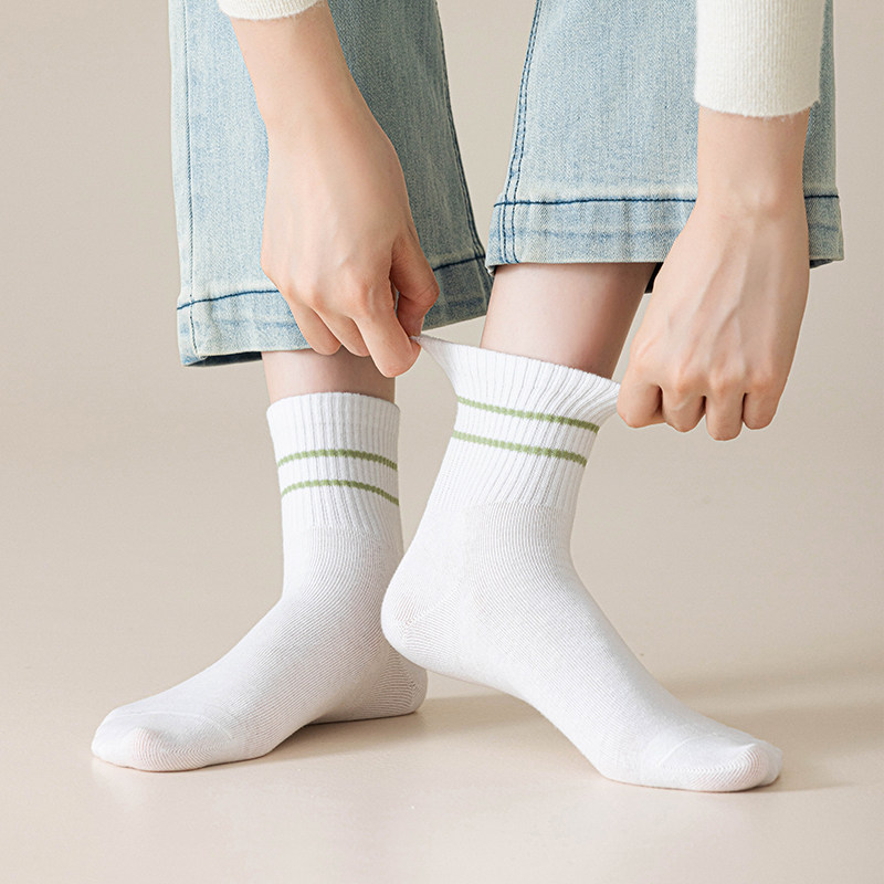 纯棉白色女士袜子中筒袜春秋季