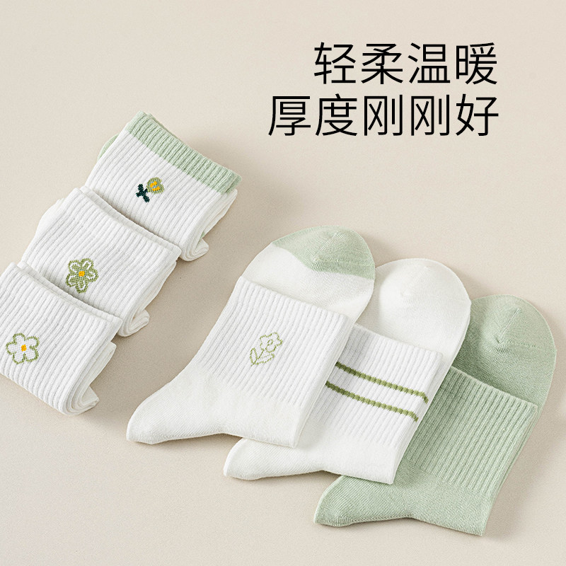 猫人纯棉女士袜子中筒袜春秋季小花日系可爱透气白色短袜2026新款