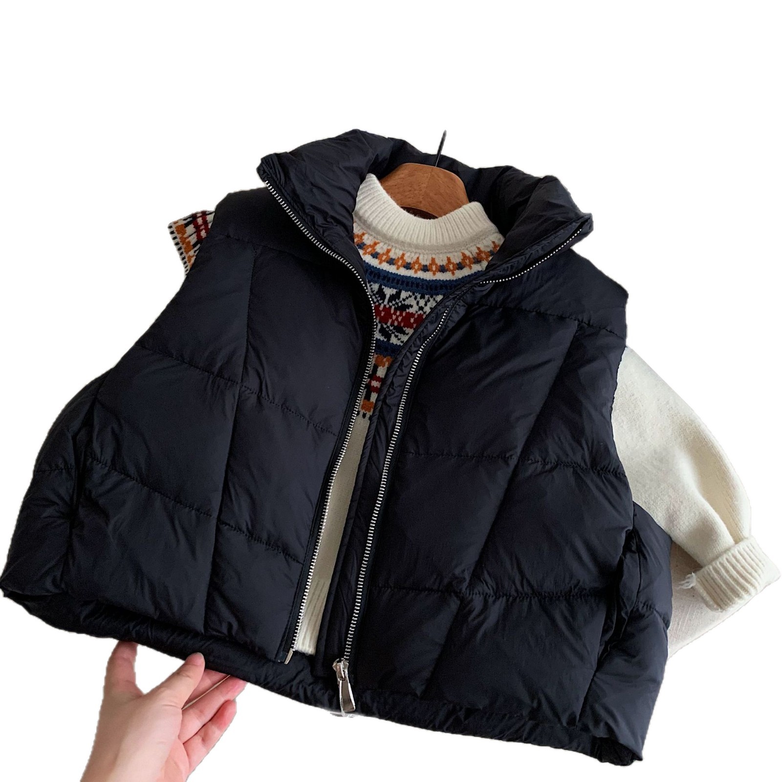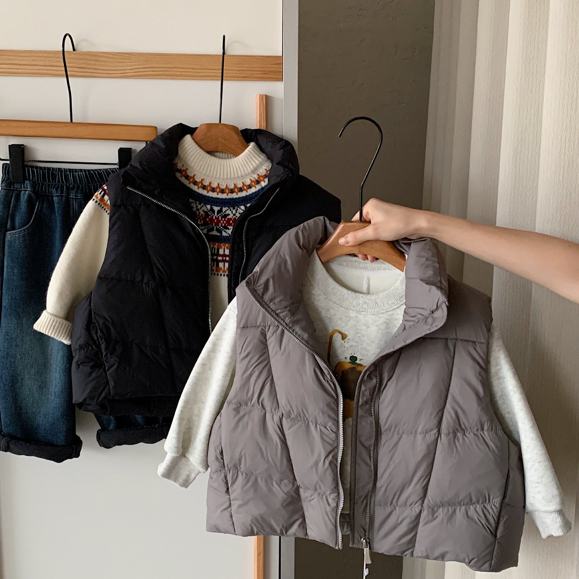 儿童羽绒马甲2025冬季新款潮男女童纯色90白鸭绒无袖背心外穿