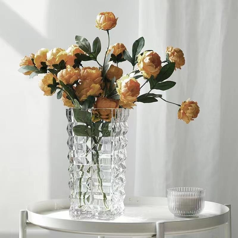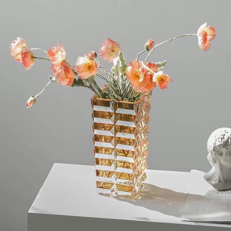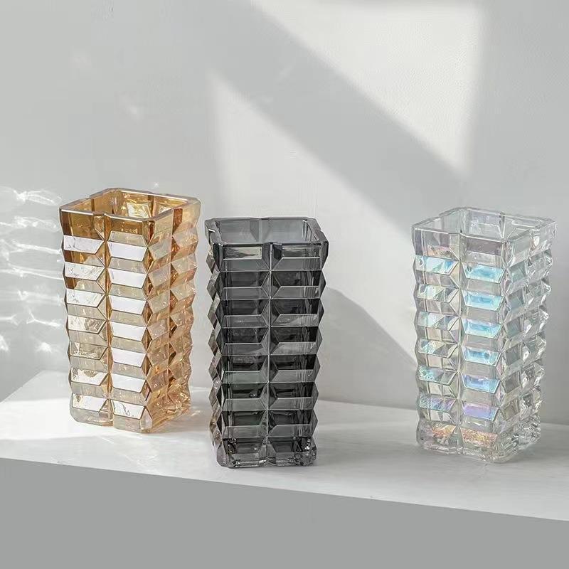方形轻奢彩色玻璃花瓶水培植物鲜花客厅桌面餐桌花瓶玻璃摆件创意