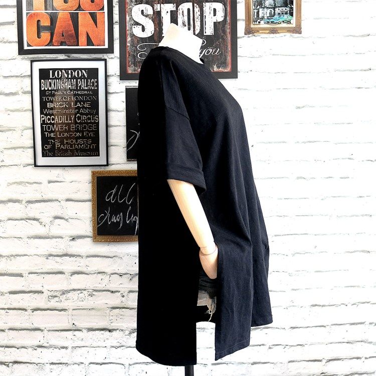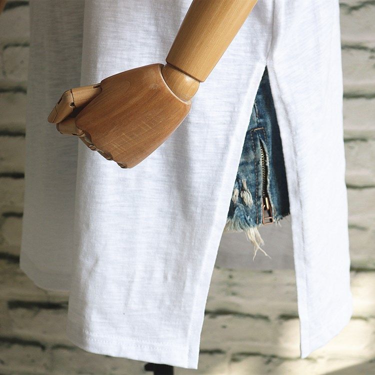 2023夏季纯色五分袖T恤女中长款竹节棉宽松韩版短袖下摆开叉衫