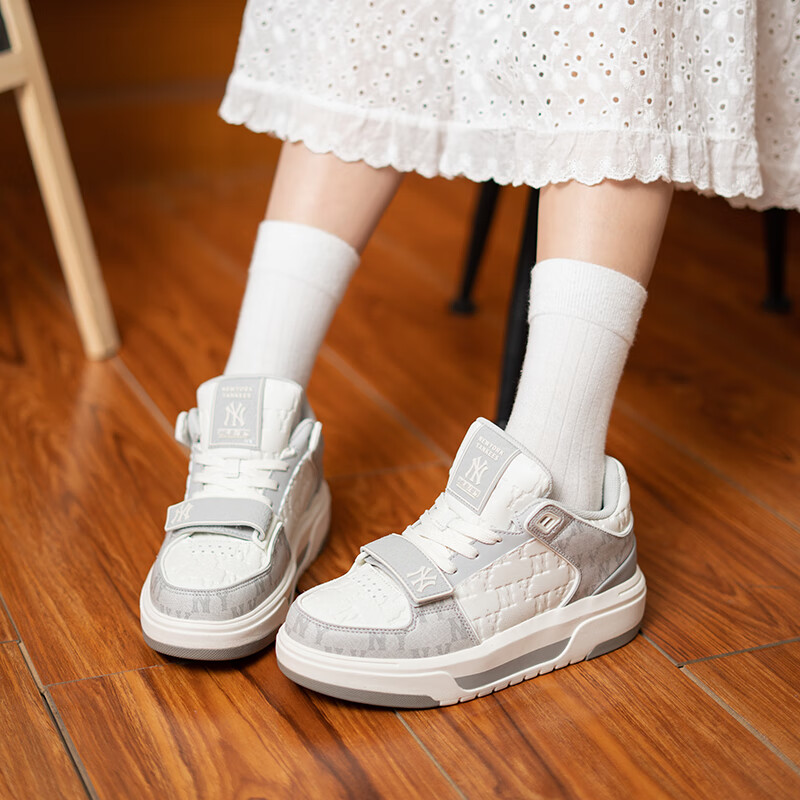 MLB官方正品鞋子男女秋季新款复古老花运动鞋学长鞋灰色厚底板鞋