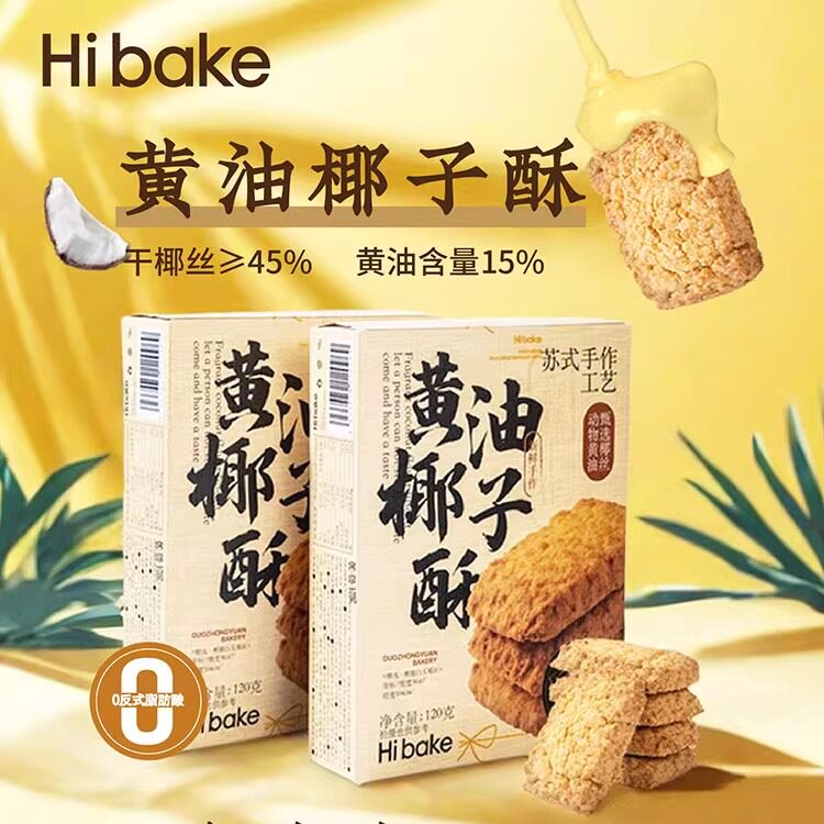Hibake黄油椰子酥曲奇椰蓉酥饼手工糕点下午茶休闲甜点饼干伴手礼