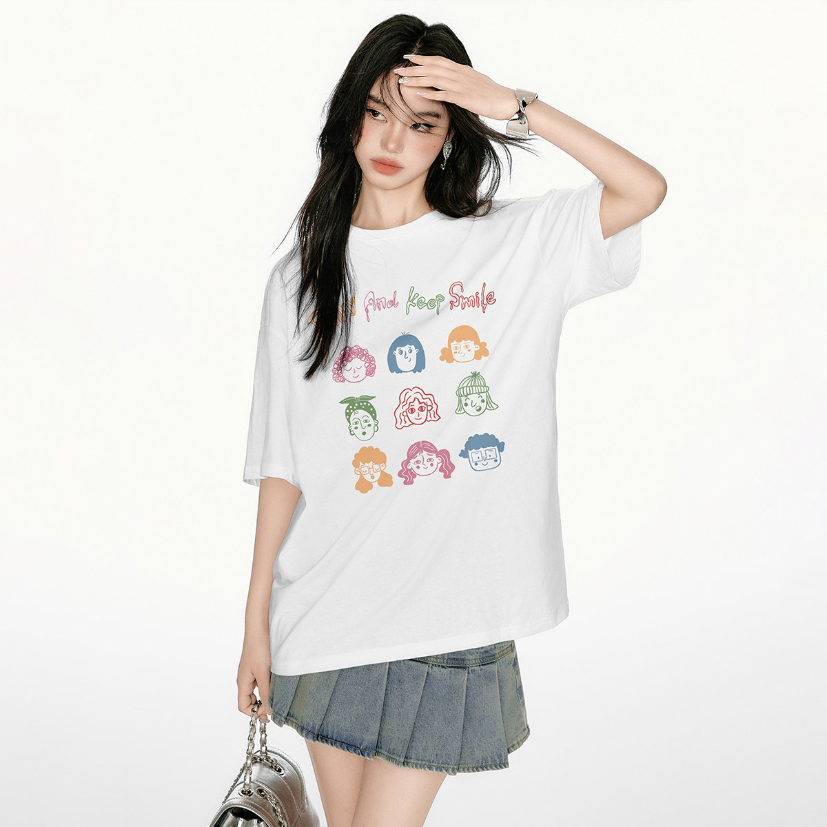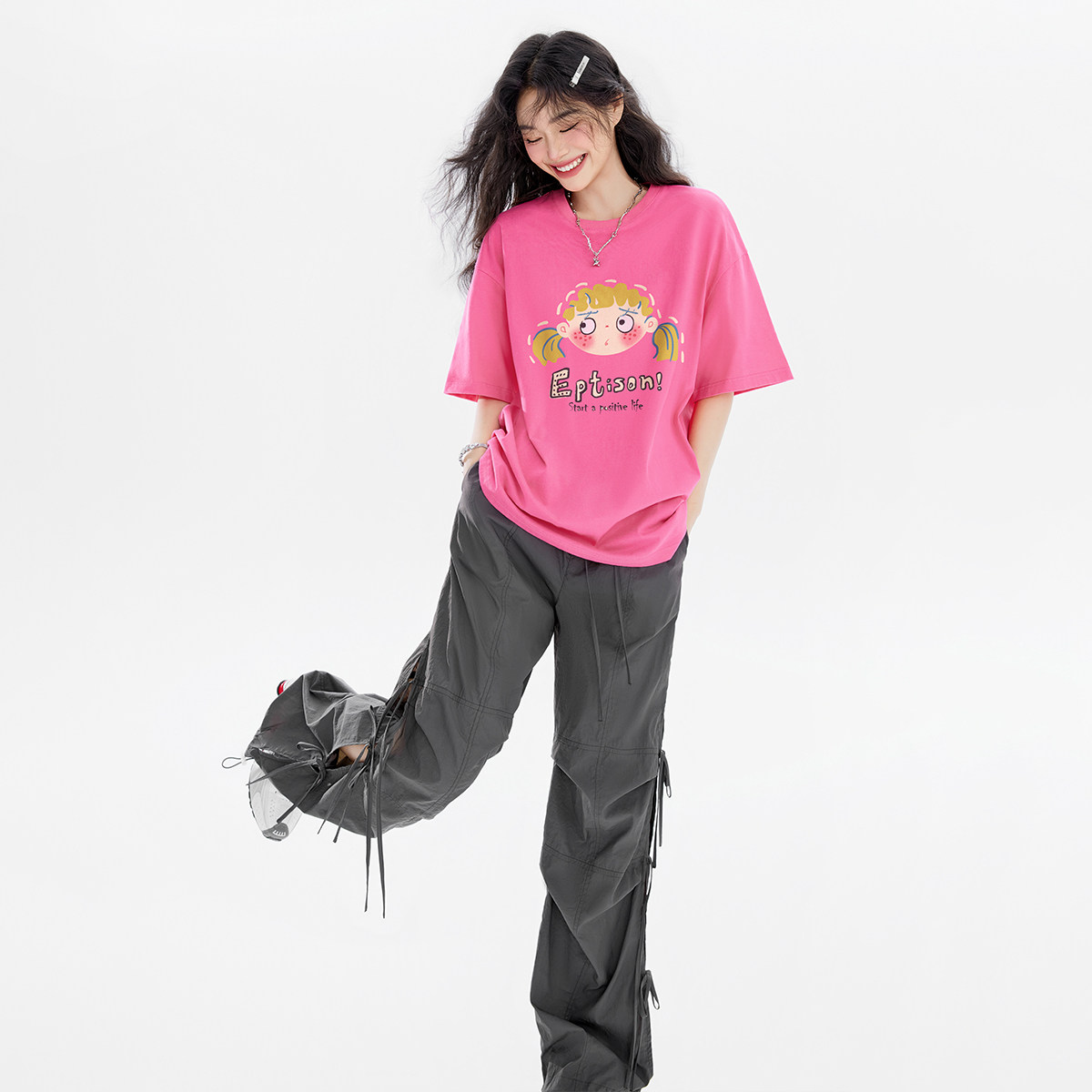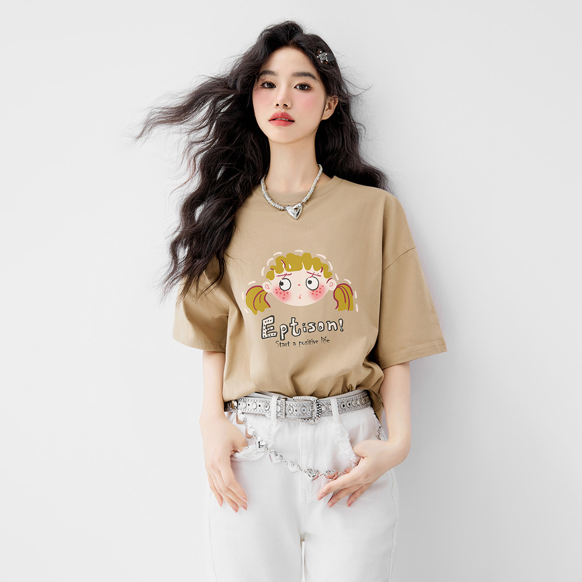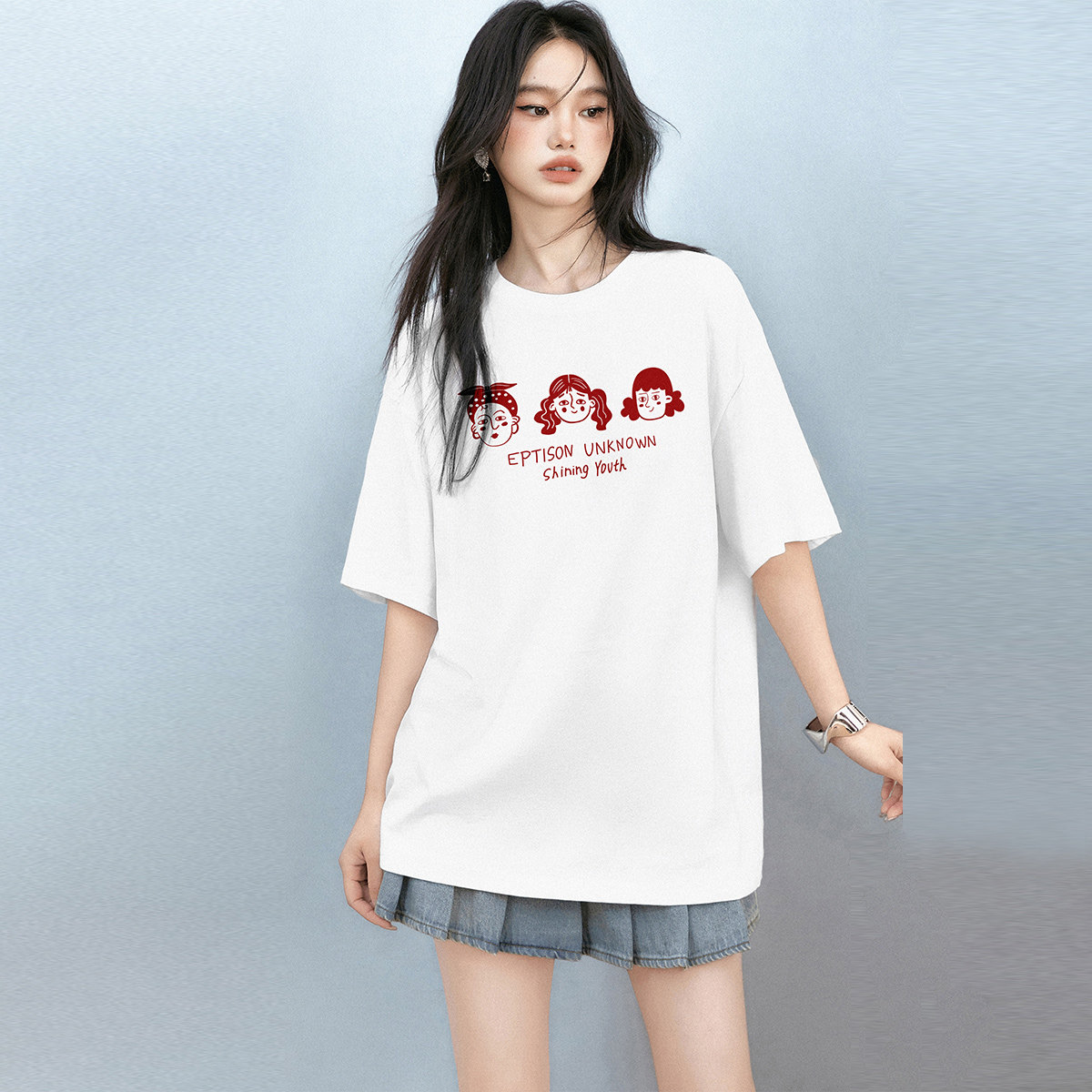 EPTISON短袖T恤女2025年夏季新款宽松可爱慵懒休闲风纯棉圆领上衣