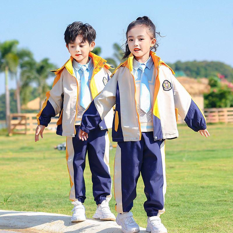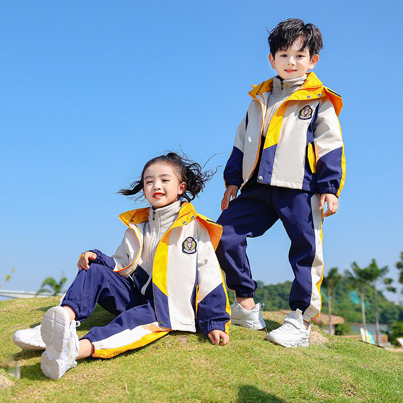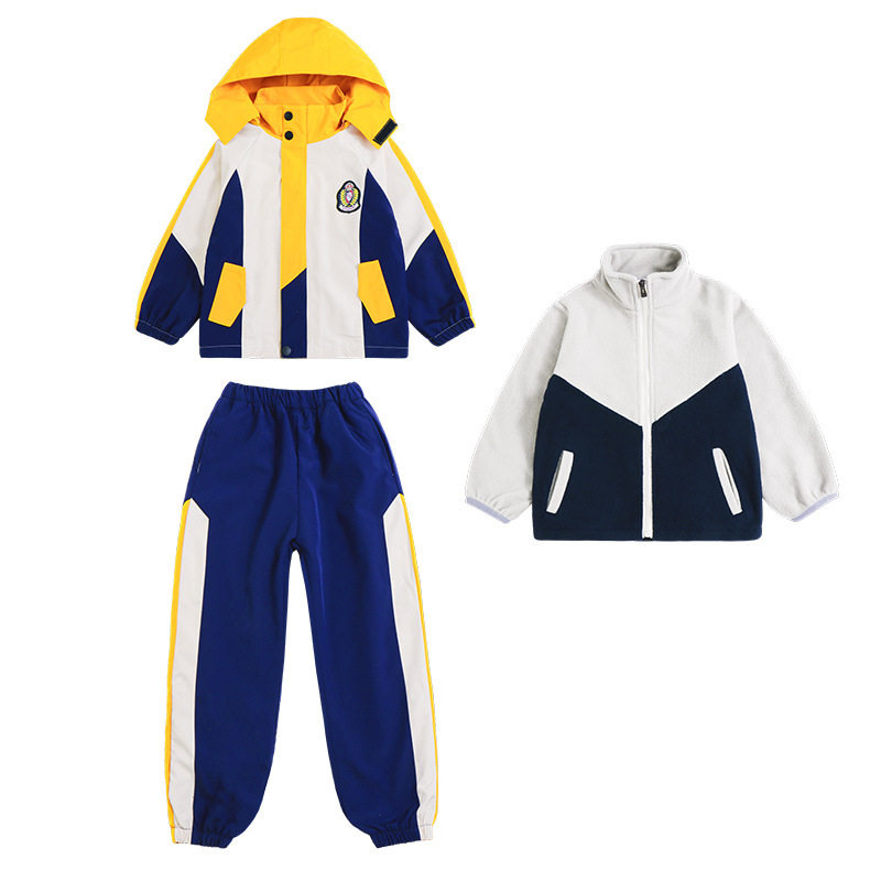 校服冲锋衣小学生三件套儿童运动套装幼儿园园服秋冬装可拆卸套装