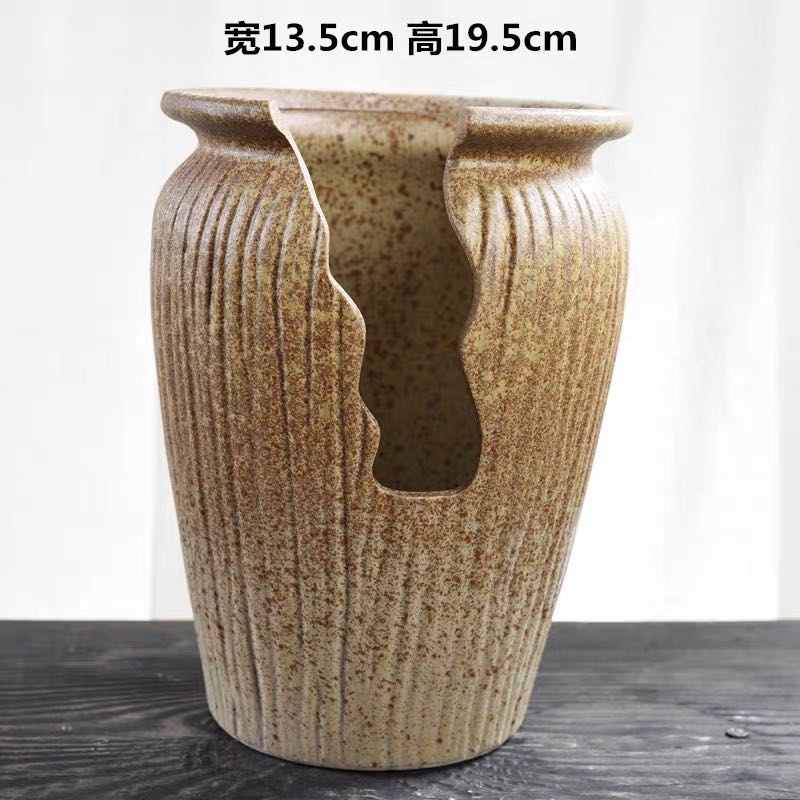 多肉花盆陶瓷特大口径复古创意个性肉肉悬崖老桩高筒缺口造型控盆