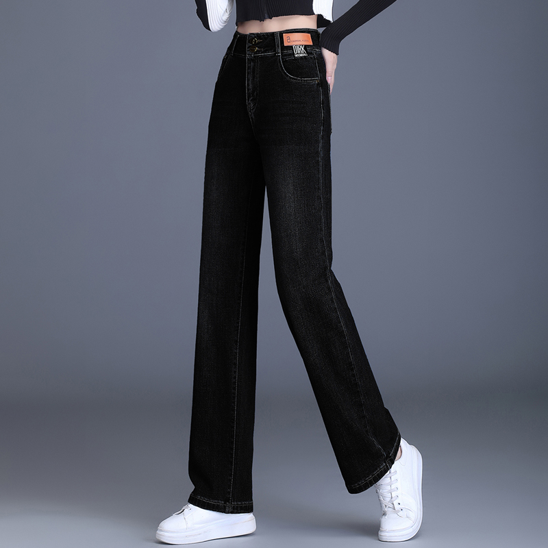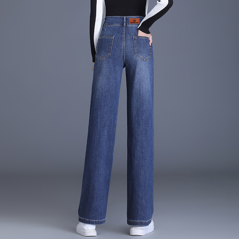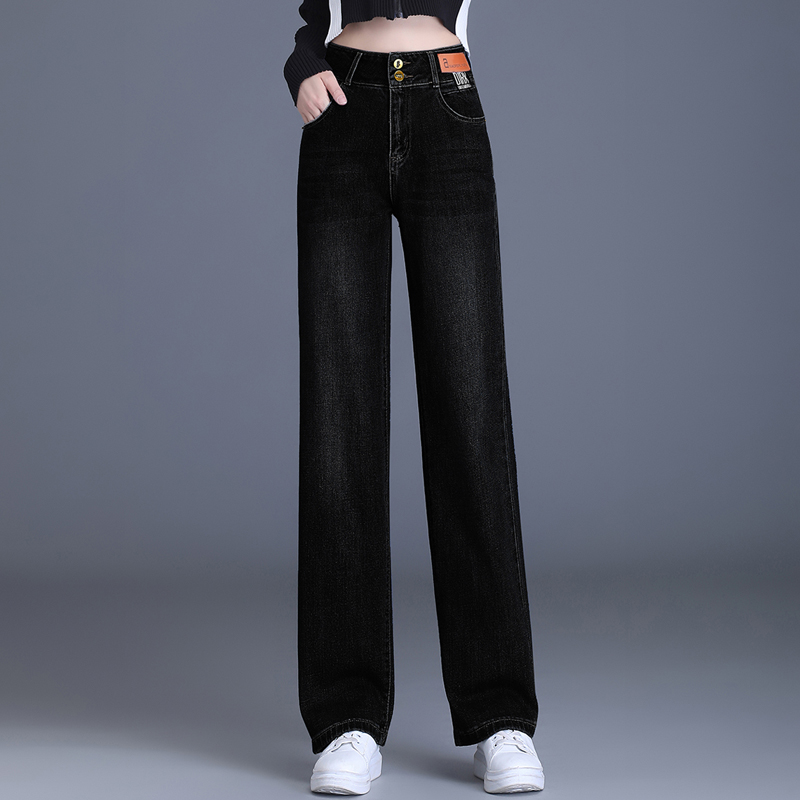 texwood苹果牌牛仔裤女阔腿裤秋季厚款高腰直筒宽松加长版女裤子