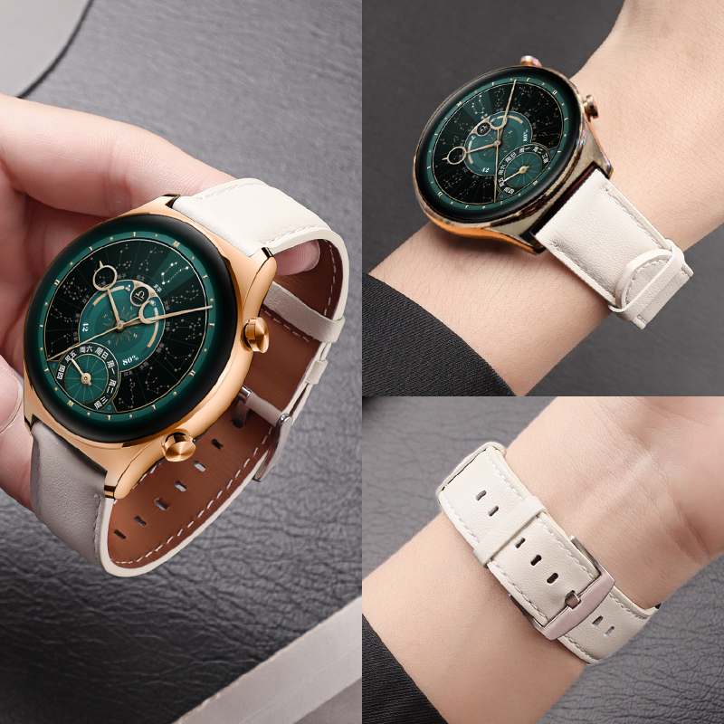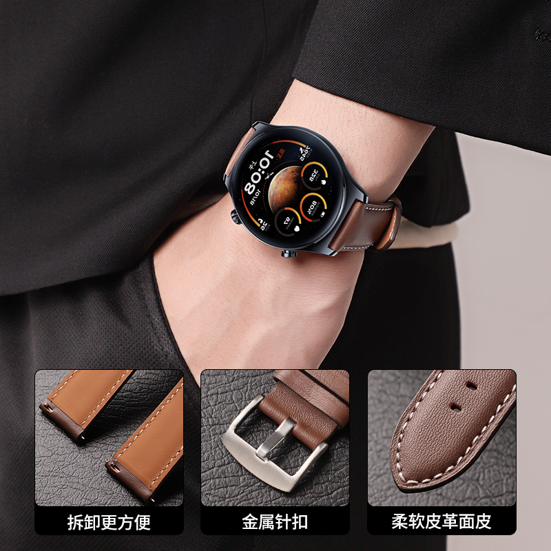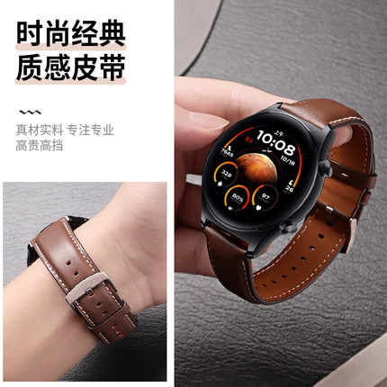 适用于荣耀手表gs4表带新款真皮荣耀4pro智能运动腕带gs3i透气时尚替换带S1男女商务magic2代ES皮质表链配件