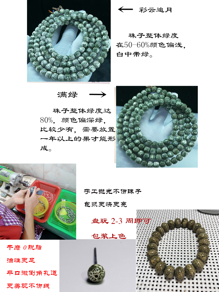原生态星月菩提阴皮108颗佛珠念珠文玩手串男盘玩桶珠翡翠帝王绿