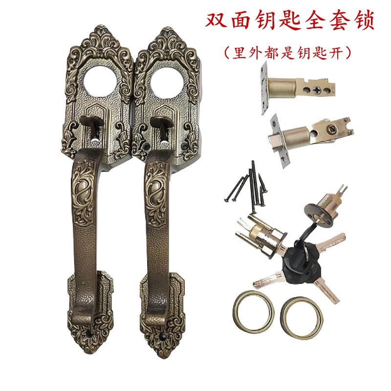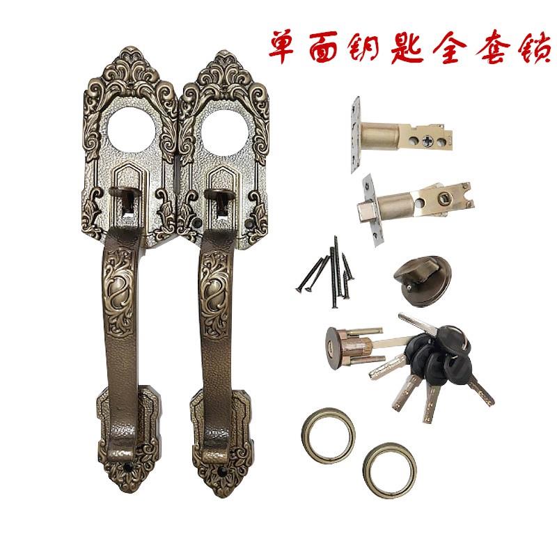 罗普斯金门锁老式铝合金双开门锁众安俩舌锁古铜拉手按压锁芯配件