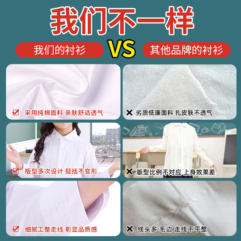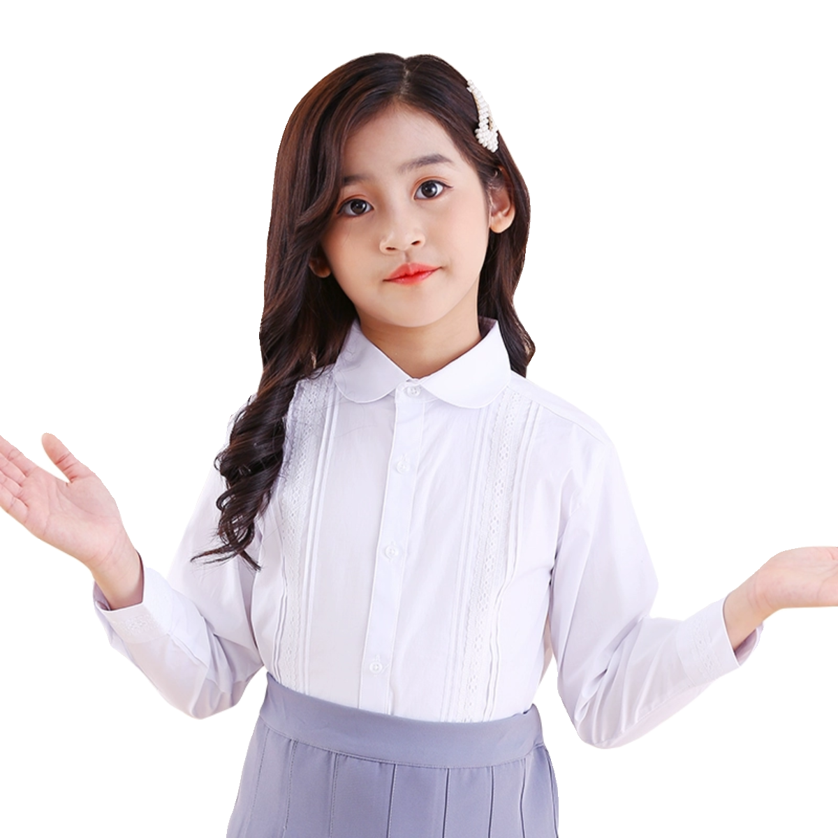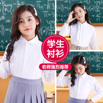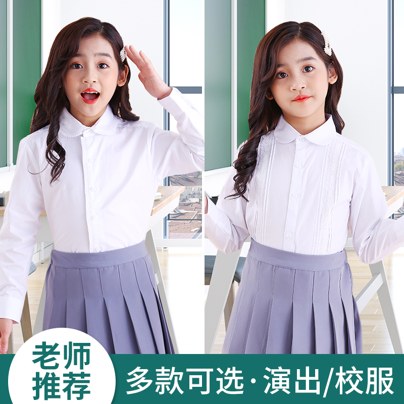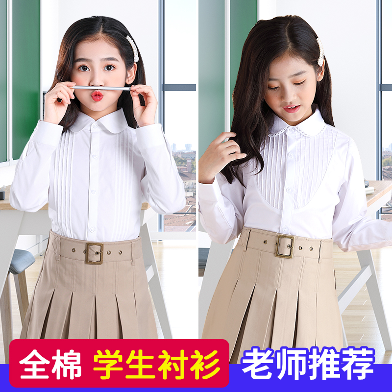 女童白衬衫长袖中大儿童女孩纯棉白色衬衣春秋小学生校服表演出服