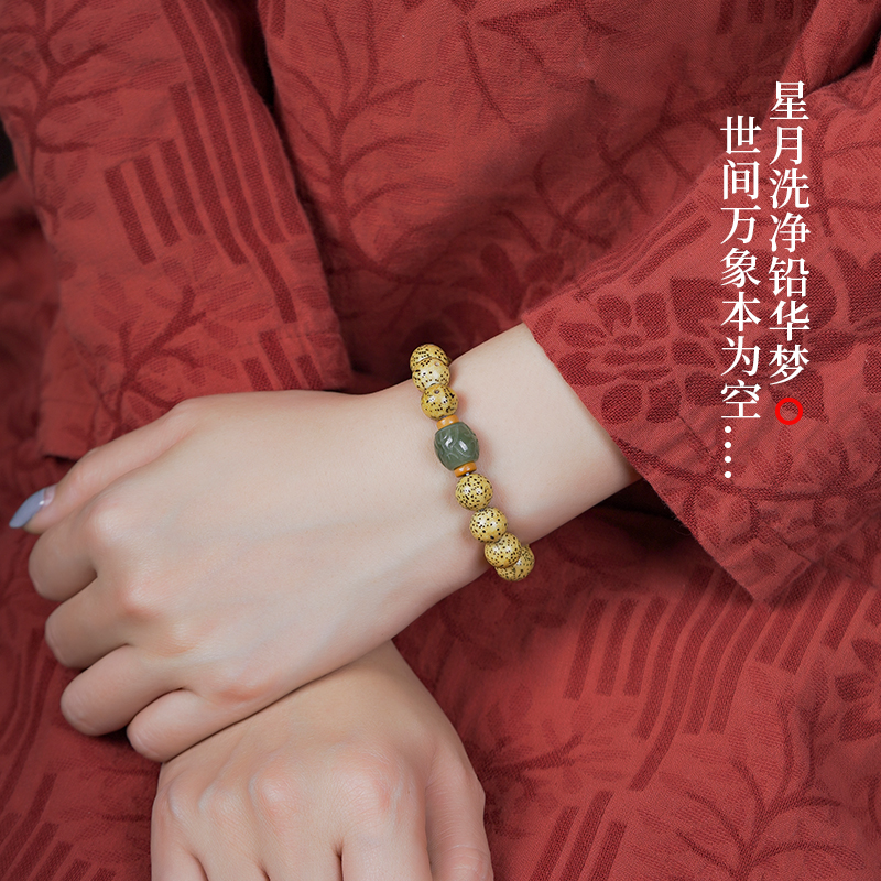 海南星月菩提子手串原生态黄金籽鸡油黄文玩佛珠1.0男女手链念珠