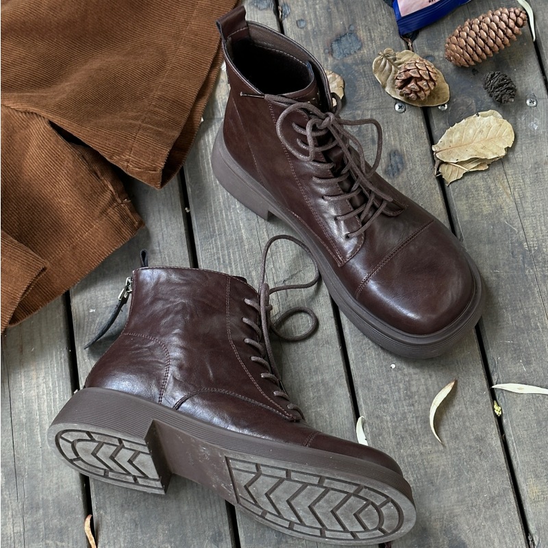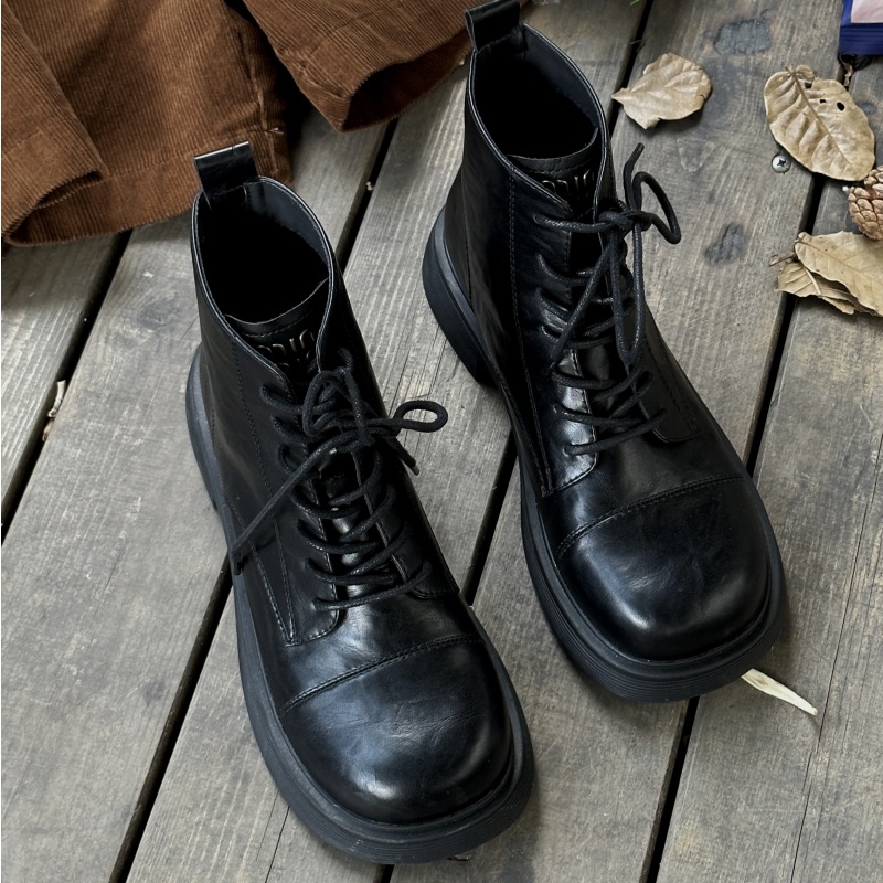 系带粗跟厚底马丁靴女2025秋冬新款百搭时尚炸街休闲一脚蹬瘦瘦靴