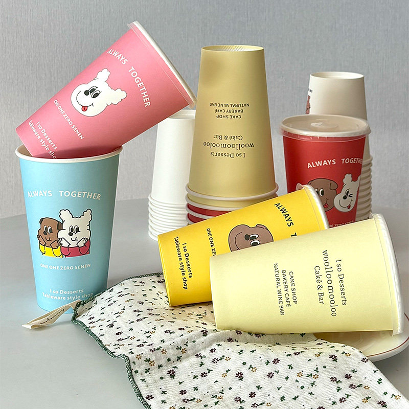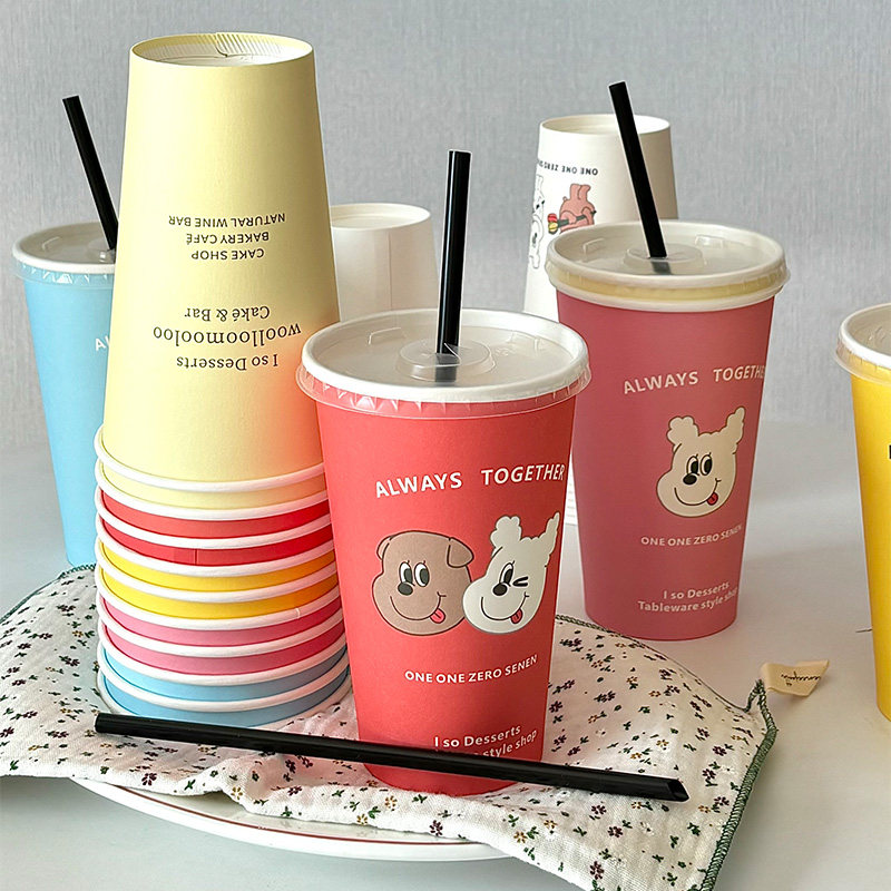 饮料杯子一次性ins卡通奶茶杯带盖加厚纸杯热饮咖啡豆浆可乐水杯