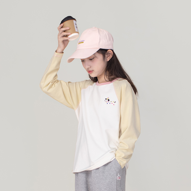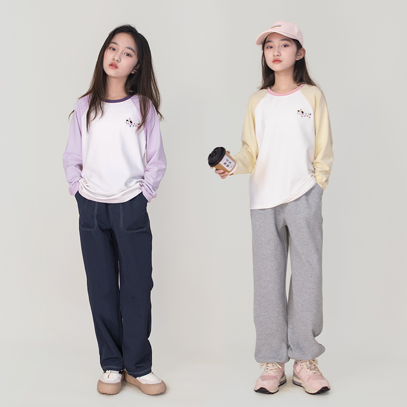 云朵棉撞色插肩袖女童棉长袖T恤2025春季新品中大童上衣打底衫