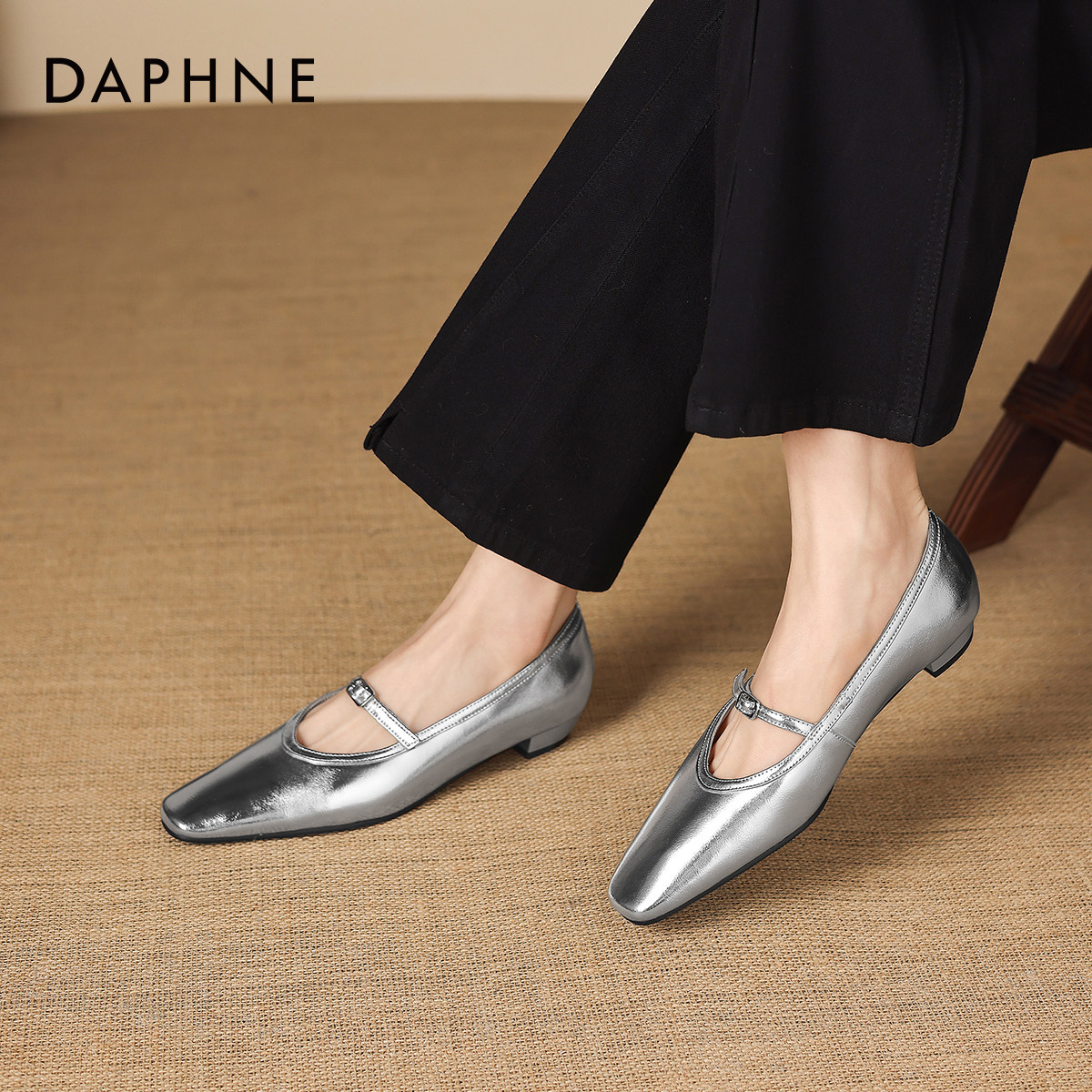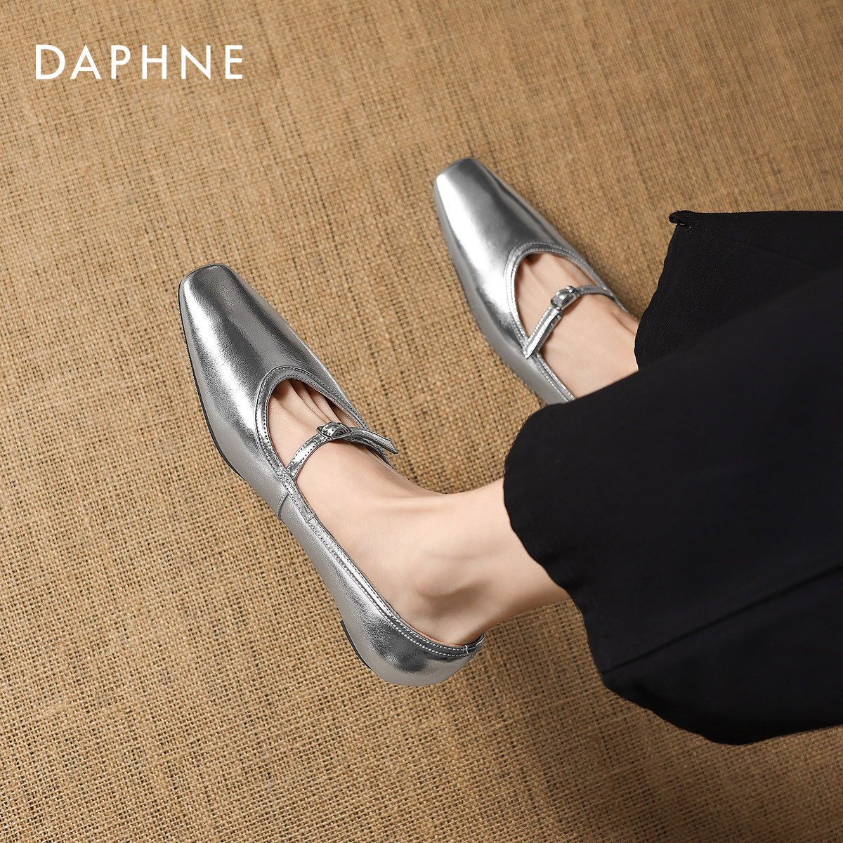 达芙妮银色平底小单鞋2026新款春季秋法式玛丽珍芭蕾配裙子女鞋子