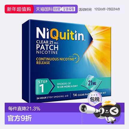 欧洲直邮NIQUITIN戒烟贴神器缓解预防烟瘾预防缓解1段14片