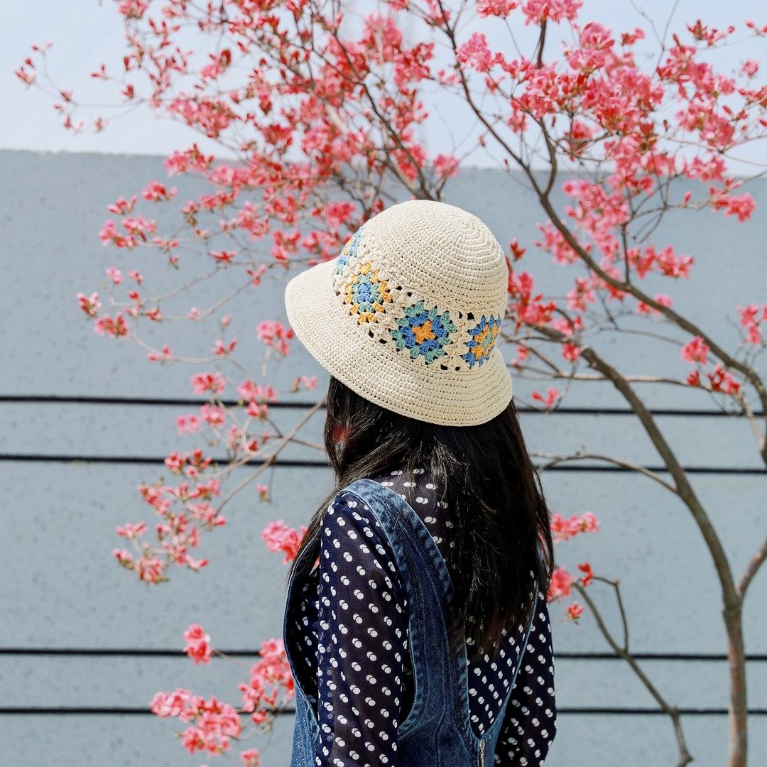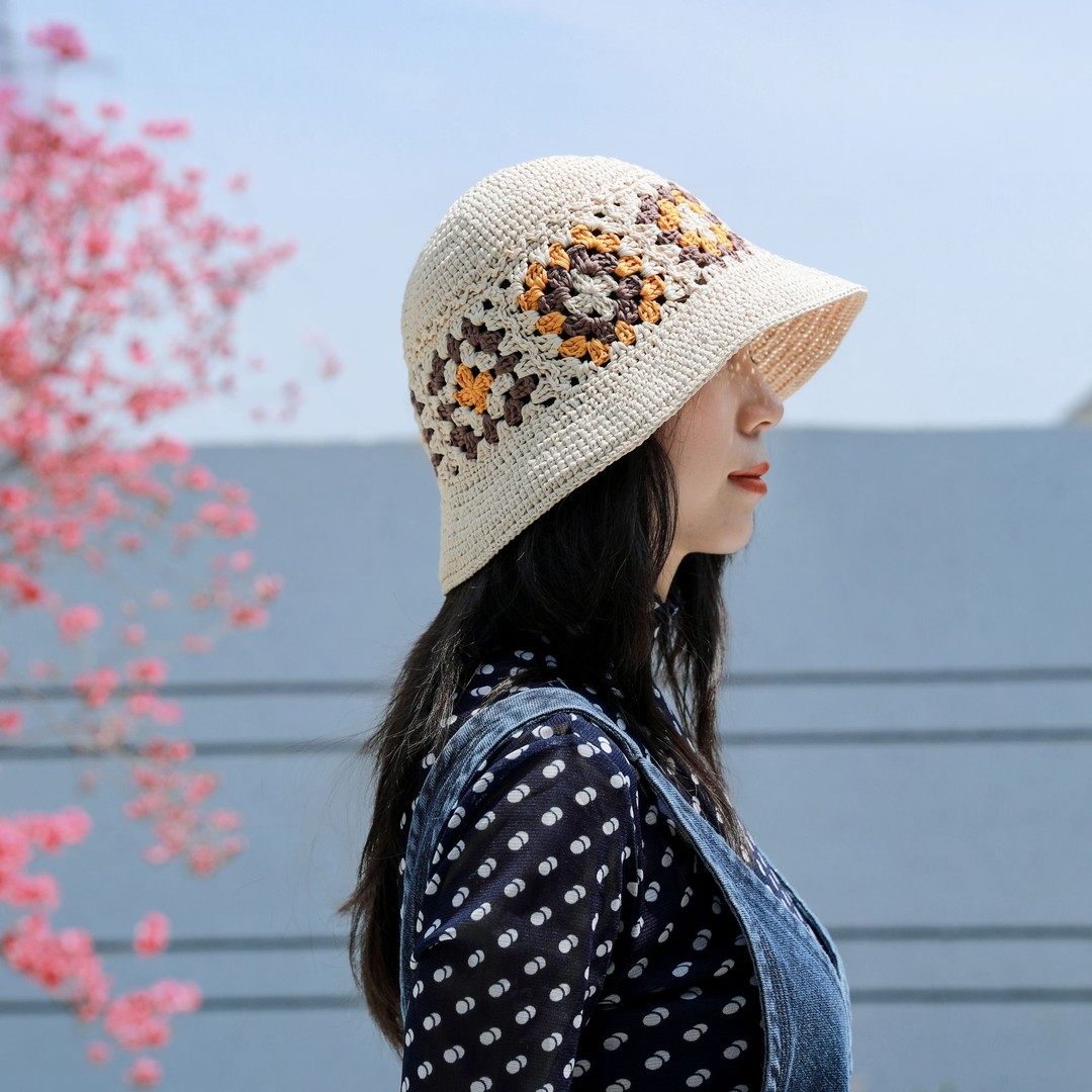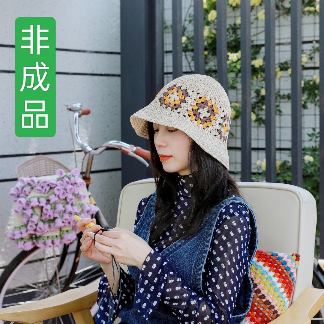 手工编织diy材料包夏季棉草祖母格渔夫帽 亲子帽材料包送闺蜜妈妈