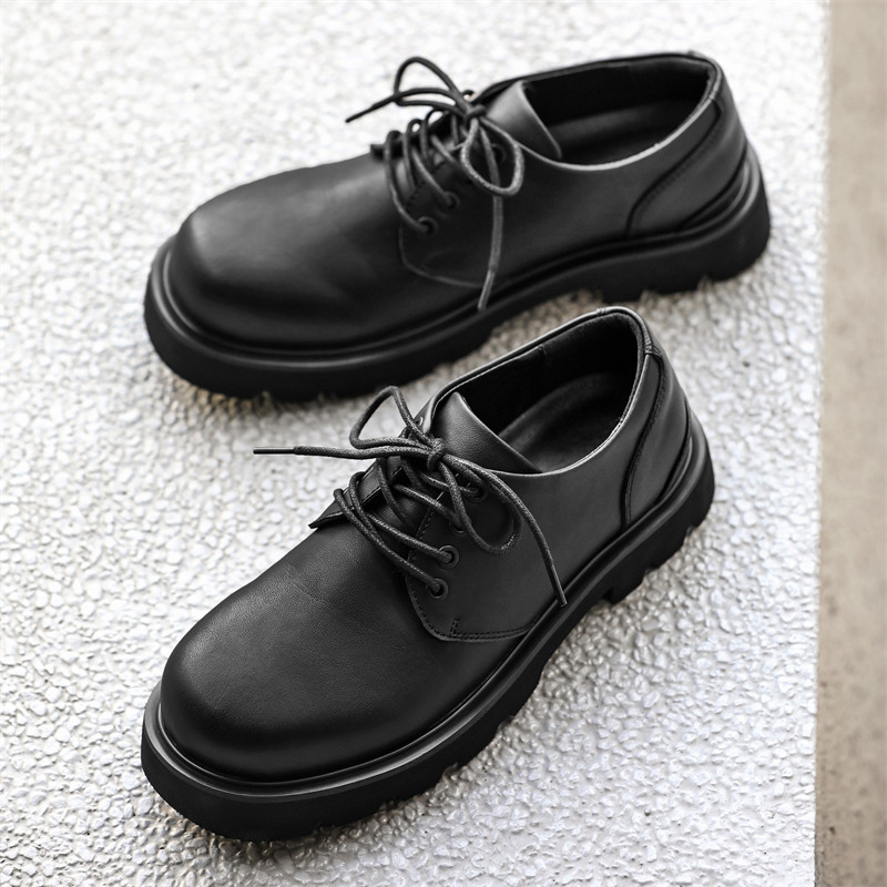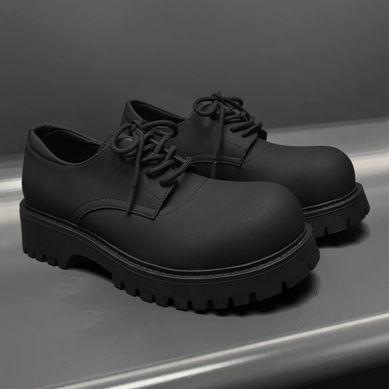 德比鞋黑色男鞋2025新款冬季厚底增高大头鞋休闲哑光男圆头皮鞋子