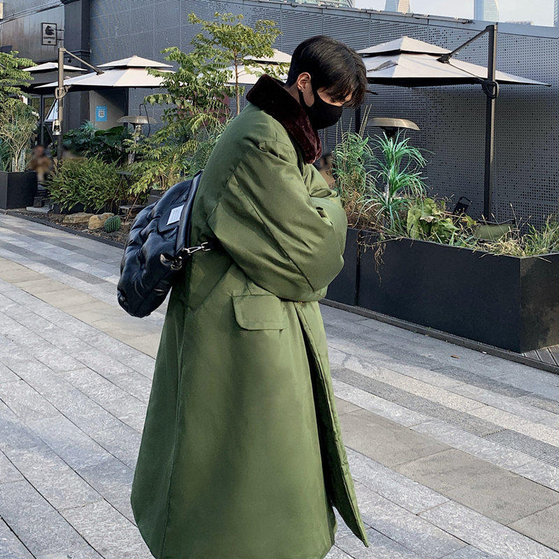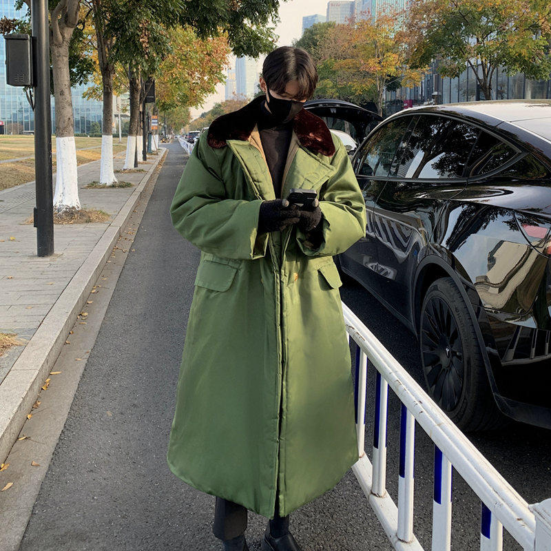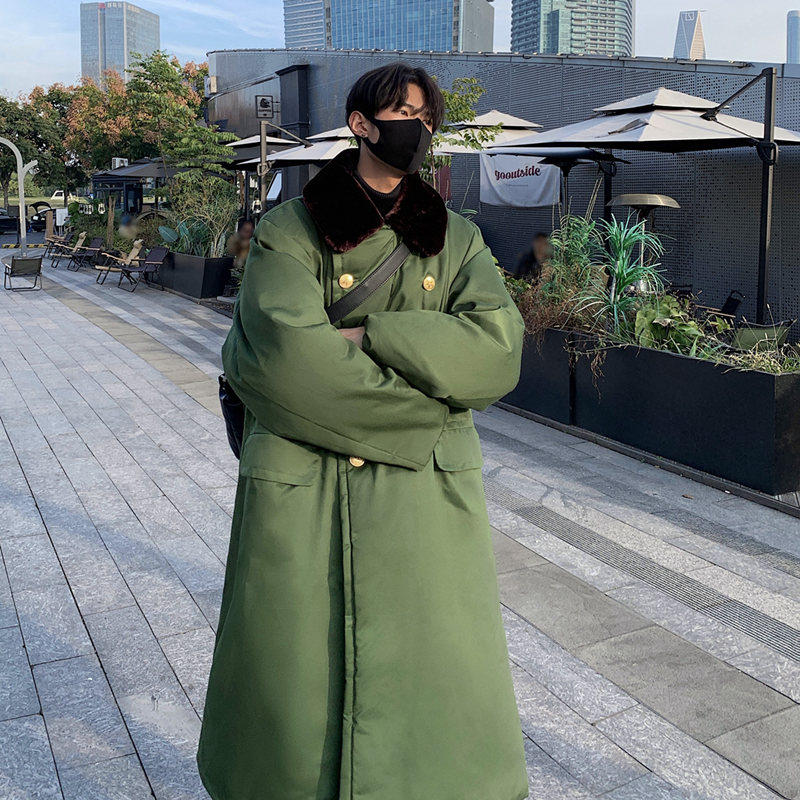 冬季男式加棉加厚军大衣网红款保暖工装大衣户外过冬长款棉风衣潮