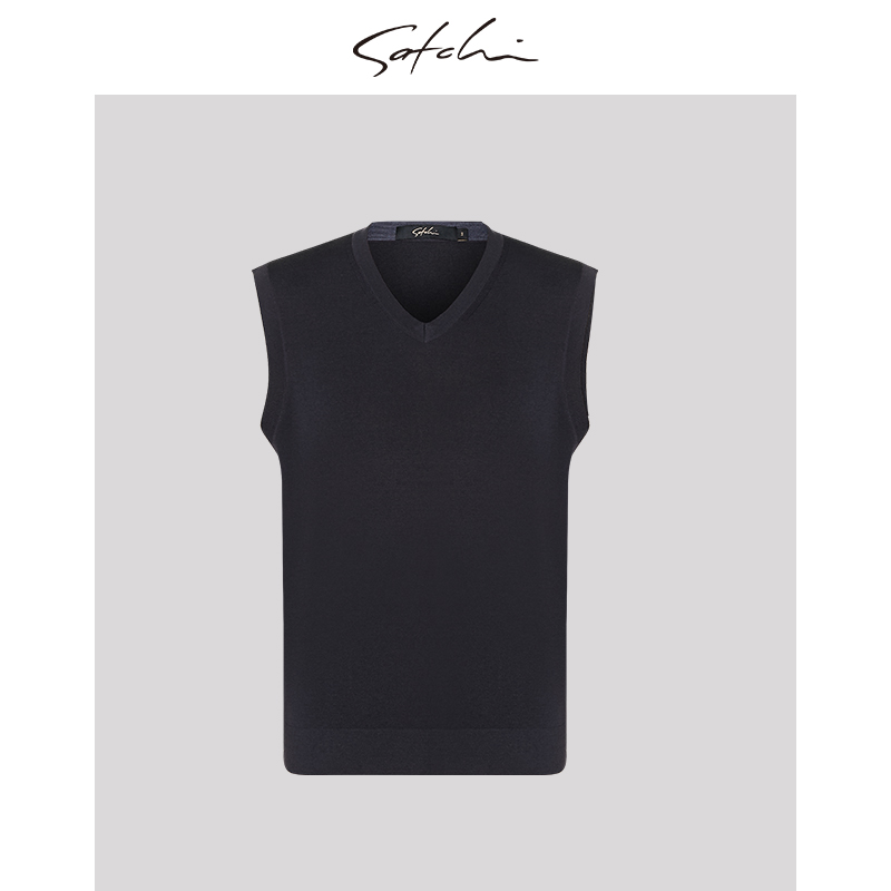 SATCHI沙驰男装男士毛背心秋季新款羊毛保暖打底衫V领马甲男