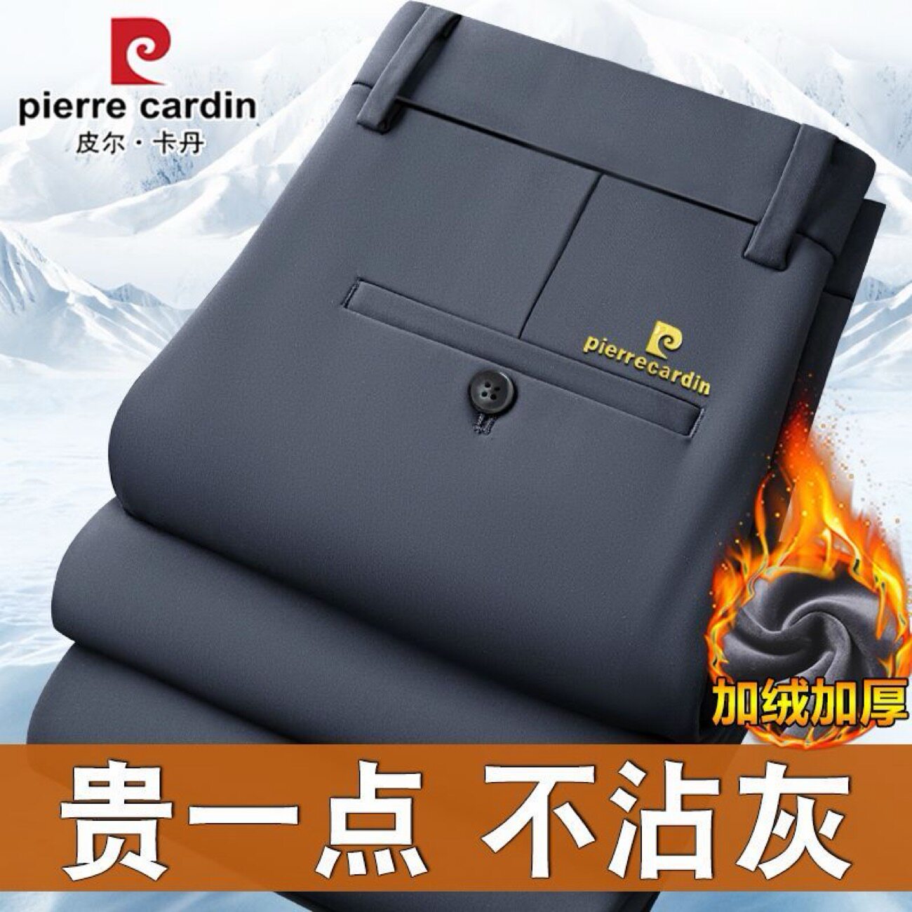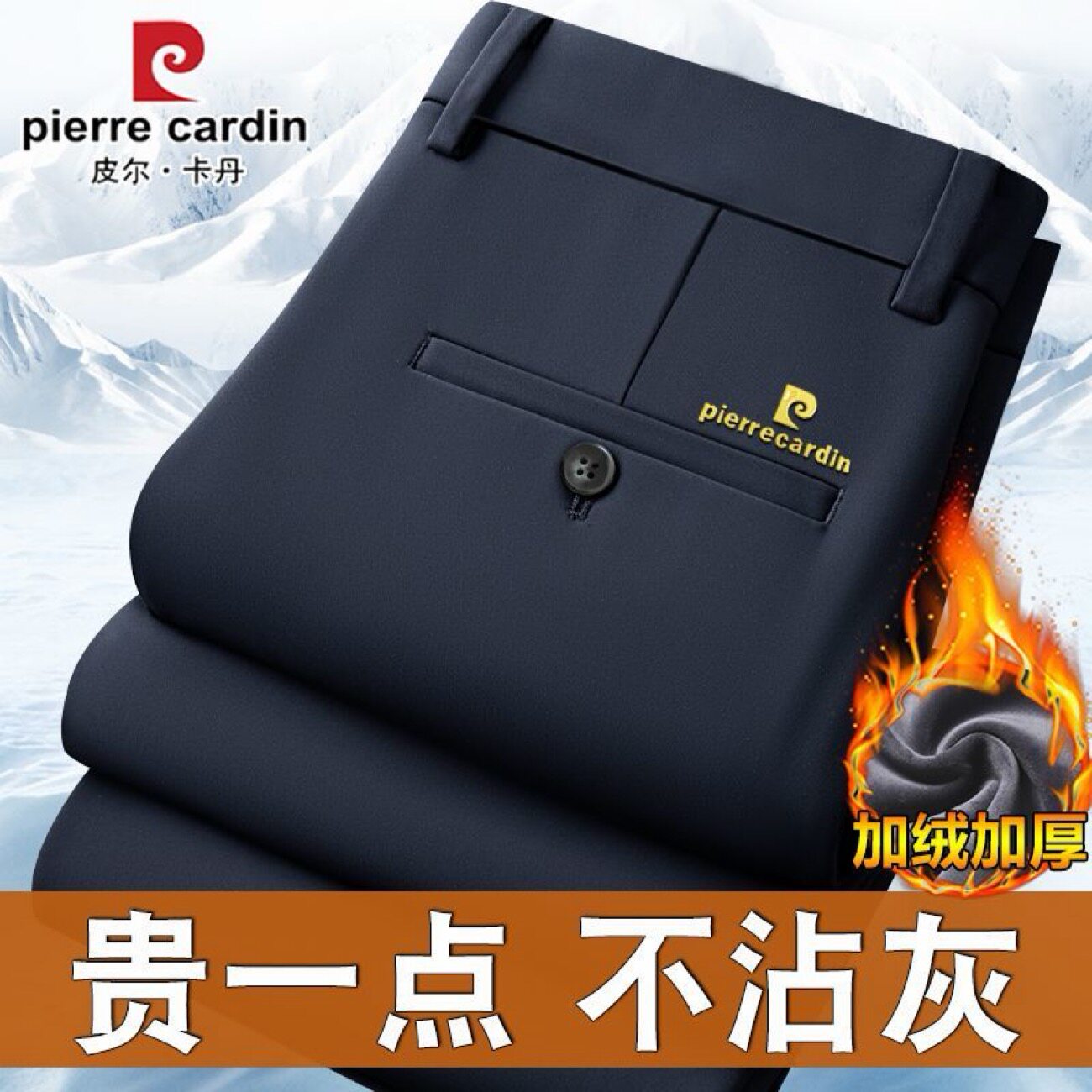 皮尔卡丹加绒加厚西裤男冬季弹力保暖中年休闲裤垂顺免烫宽松长裤
