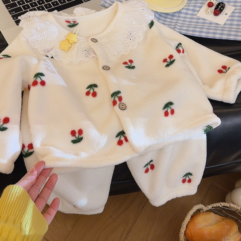 秋季新款儿童睡衣女宝宝可爱家居服套装保暖卡通秋冬季珊瑚绒加厚
