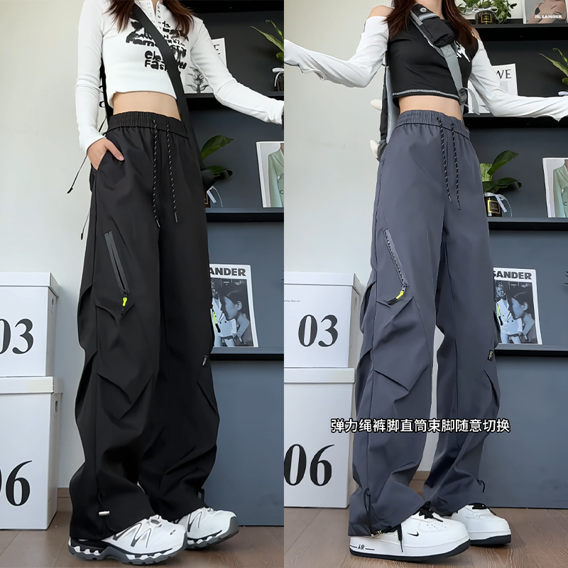 美式潮牌三防冲锋裤男女秋季压褶工装裤宽松大码百搭显瘦休闲裤子