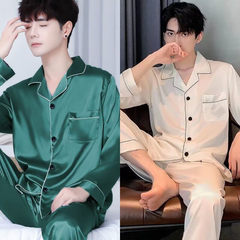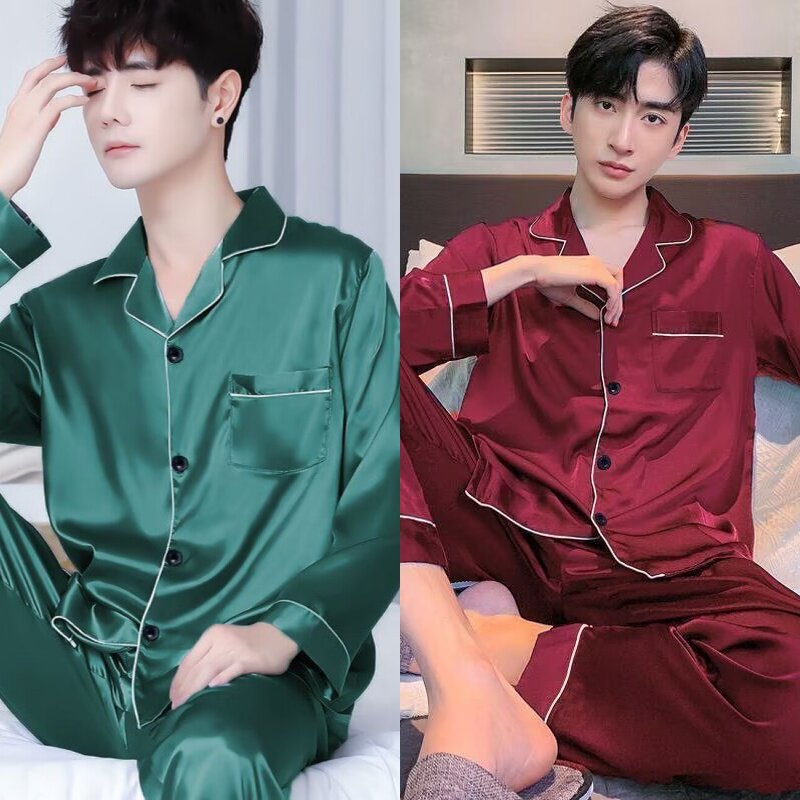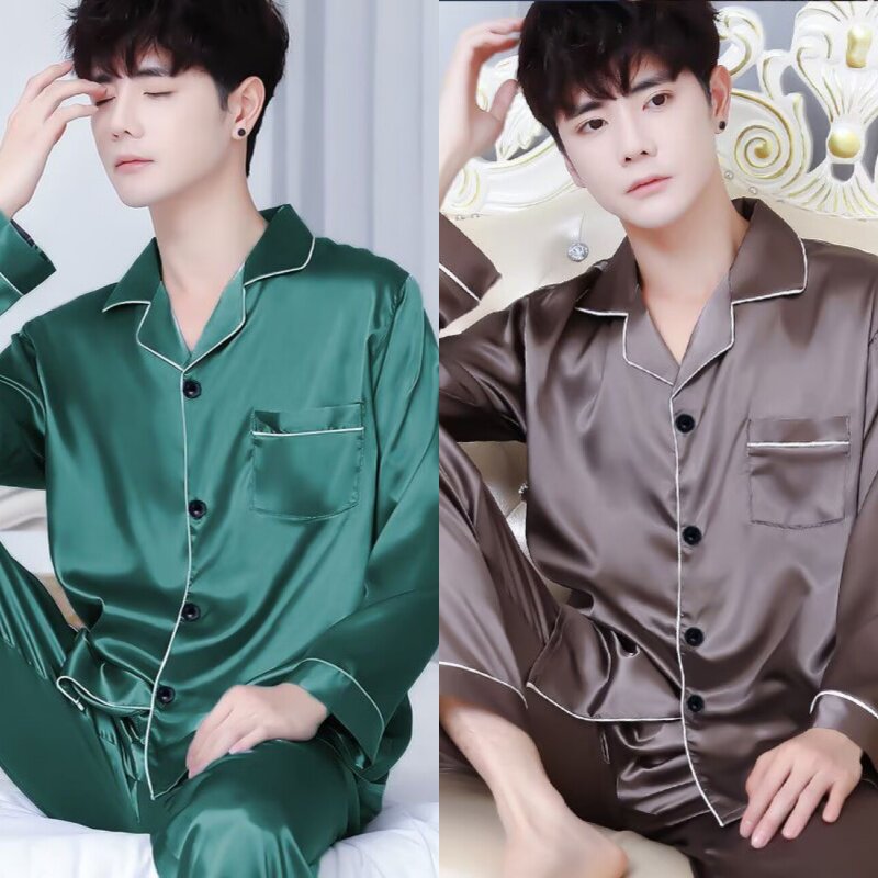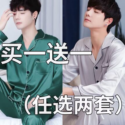 睡衣男士春夏季夏天长袖冰丝家居服春秋款薄款仿真丝男款两件套装