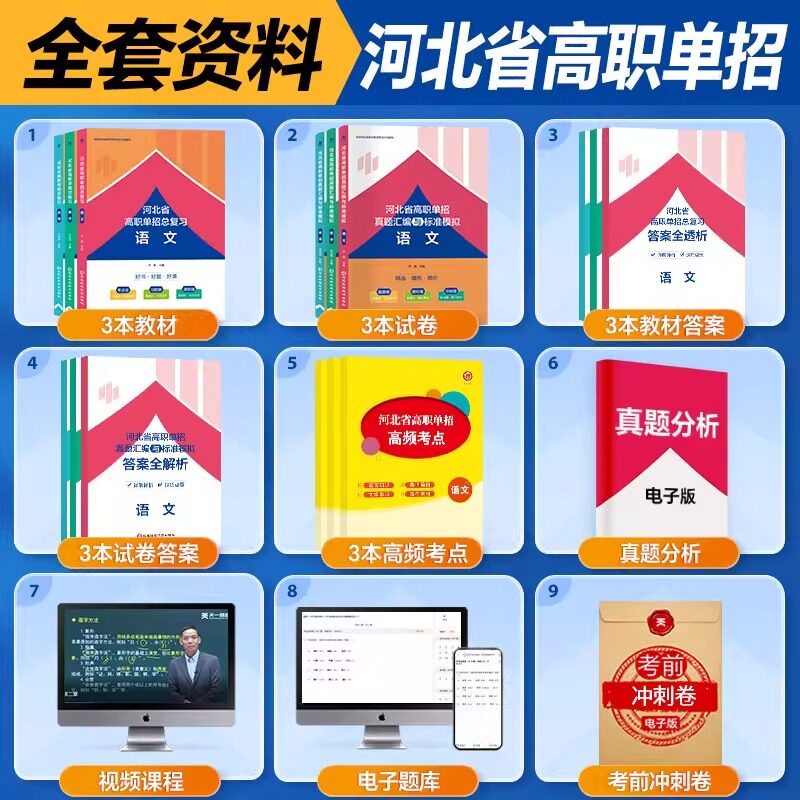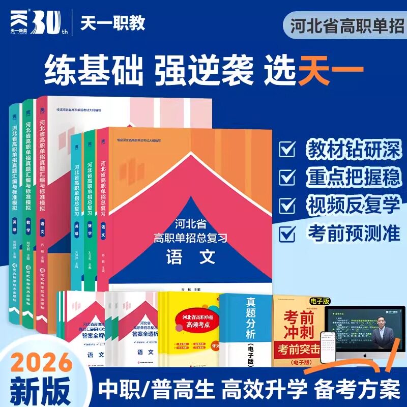 2026年河北高职单招总复习资料教材真题模拟试卷必刷题职教高考中职生升学语文数学英语物理化学政治历史一二三四五六七九十类天一