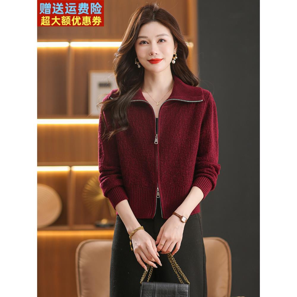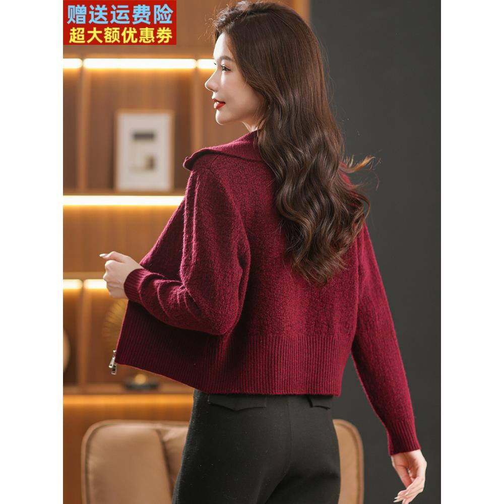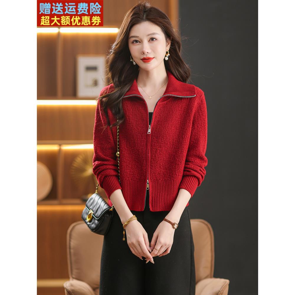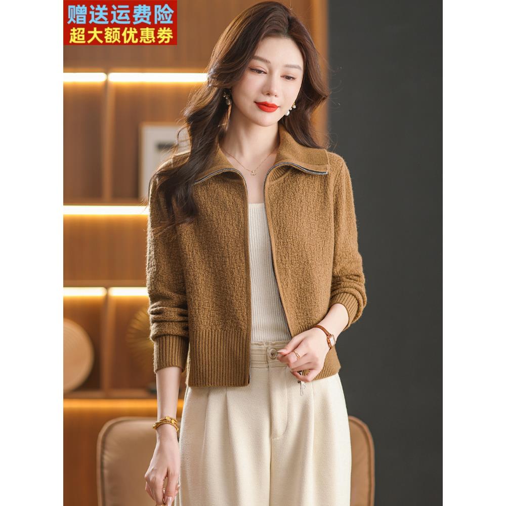 2025春秋新款品牌翻领拉炼针织开衫外套宽松显瘦百搭毛衣外搭上衣