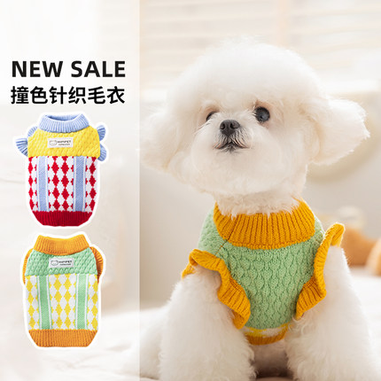 宠物小狗狗衣服菠萝针织撞色毛衣泰迪比熊雪纳瑞小型幼犬宠物春装