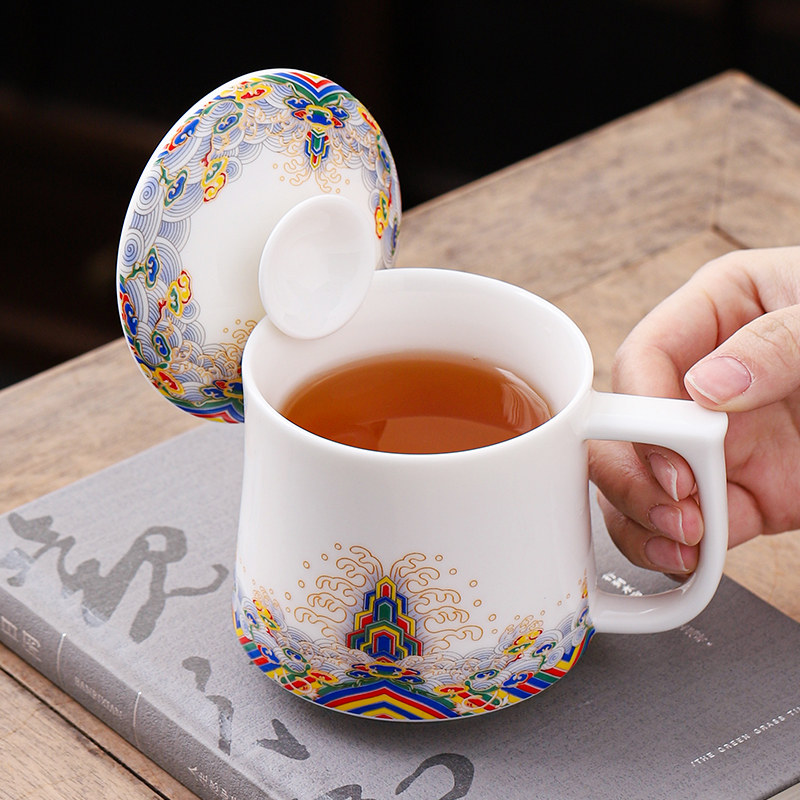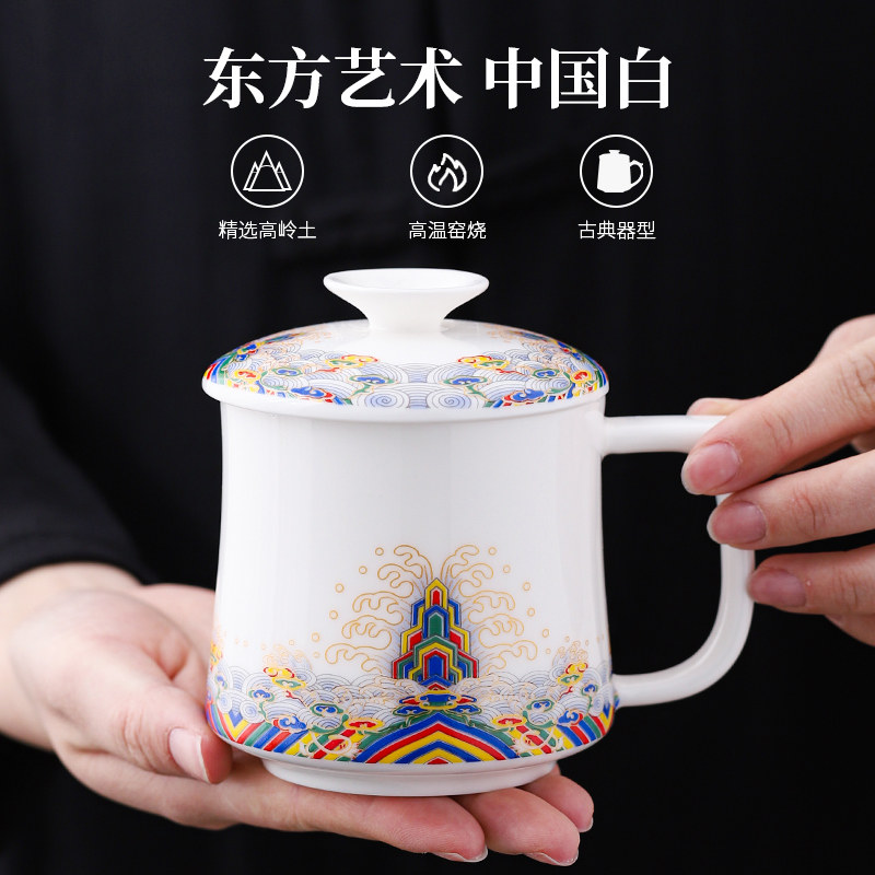 羊脂玉德化白瓷泡茶杯陶瓷中式高端马克杯个人专用办公室水杯带盖