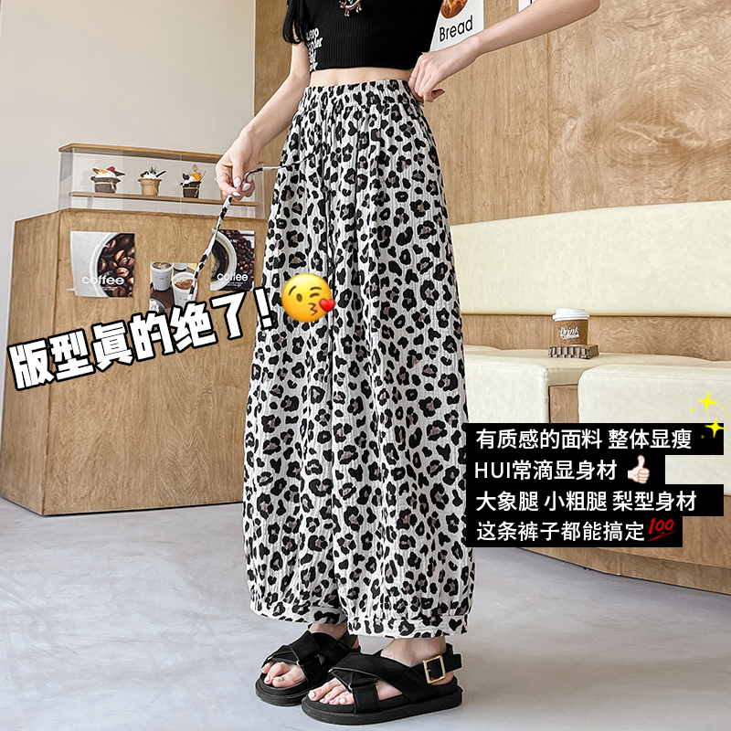 复古豹纹灯笼裤女2025夏季宽松慵懒风高腰显瘦薄款九分阔腿休闲裤
