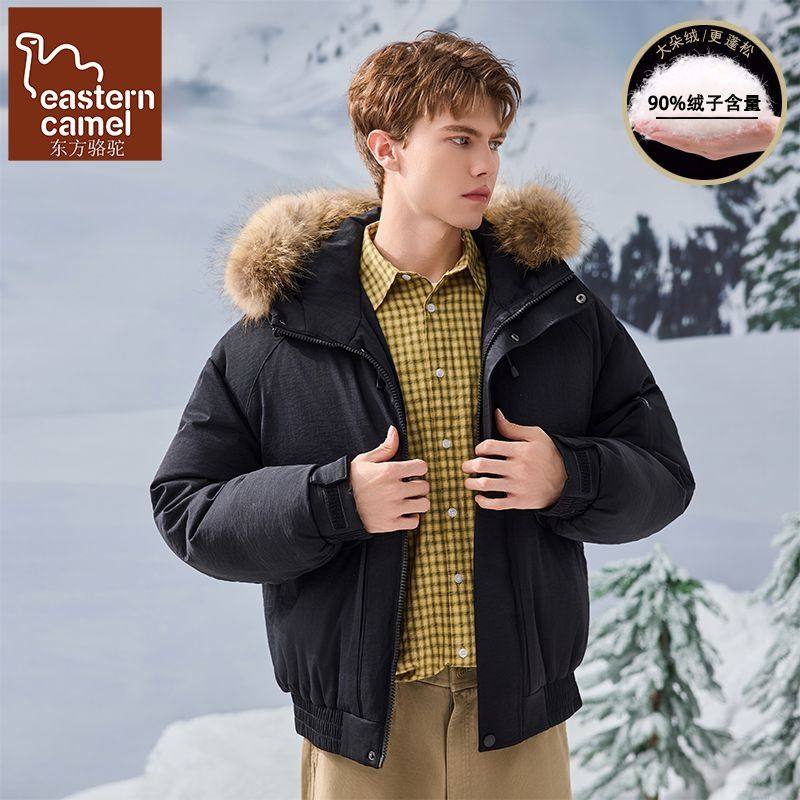 东方骆驼冬季90鸭绒可拆卸毛领连帽羽绒服男潮牌情侣保暖加厚外套