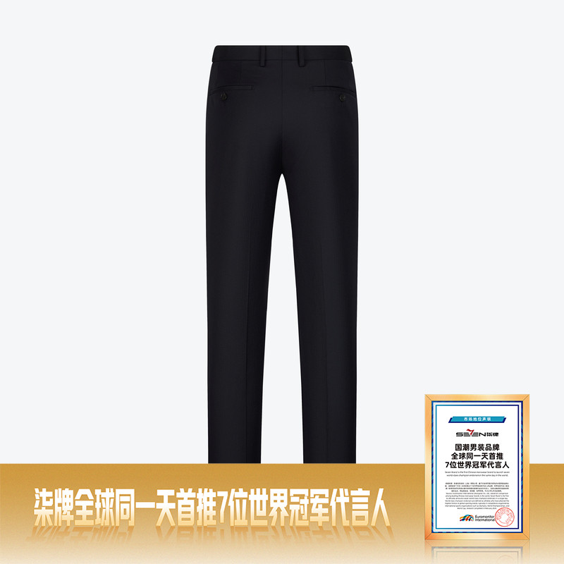 【纯羊毛】柒牌男装西裤男士春秋新款商务休闲人字纹垂感直筒长裤